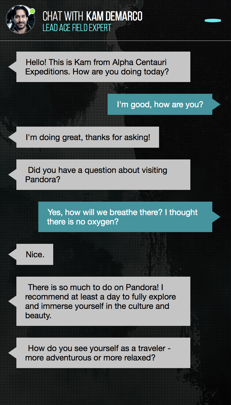 The live chat is completely automated, so sometimes responses generate something genuine and cool, and other times… well, you’ll see…