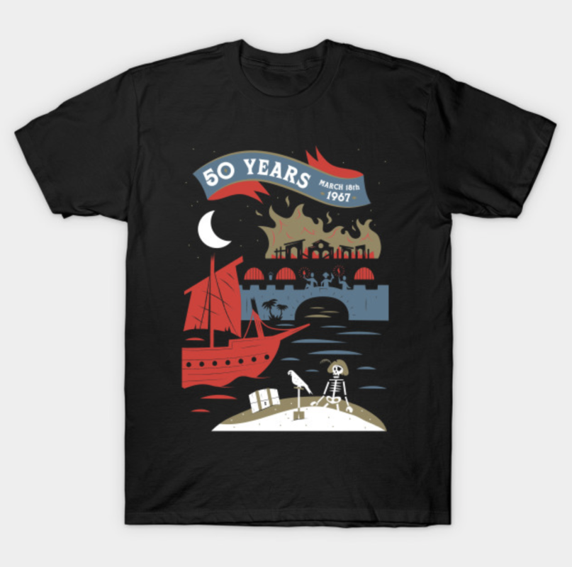 And don’t forget our Limited Release Pirates of the Caribbean 50th Anniversary Shirt by artist Rob Yeo, which is only available until March 26! Because this shirt is part of our Limited Release collection, it is priced at $18.00 and not subject to the sale.