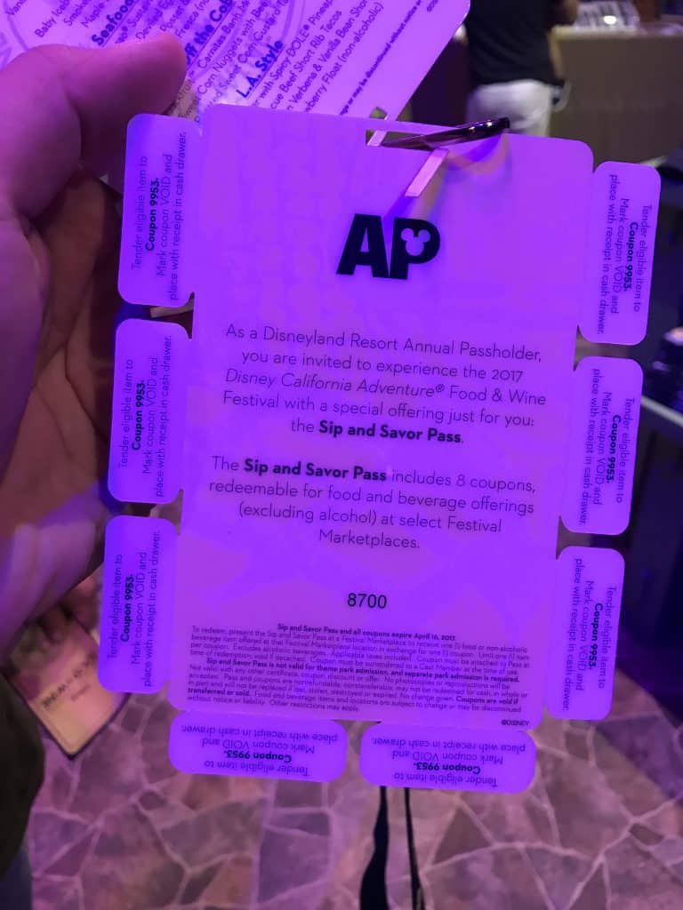 I’ll leave you with one more tip: be sure to pick up the Sip and Savor Pass if you are an Annual Passholder at the Disneyland Resort. For just $45.00, you can get 8 take redeemable for any non-alcoholic items. This is a great value as the price per tab comes out to about $5.60 each and most items are $6.00 or more.