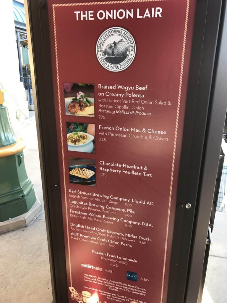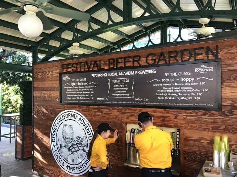 Booths selling food and drink at this event are spread from Hollywood Land to Paradise Pier, with most of them along the Performance Corridor in the center of the park, with the exception of LA Style, the Festival Showplace, and the Brewhouse near Monsters Inc. – Mike and Sully to the Rescue.