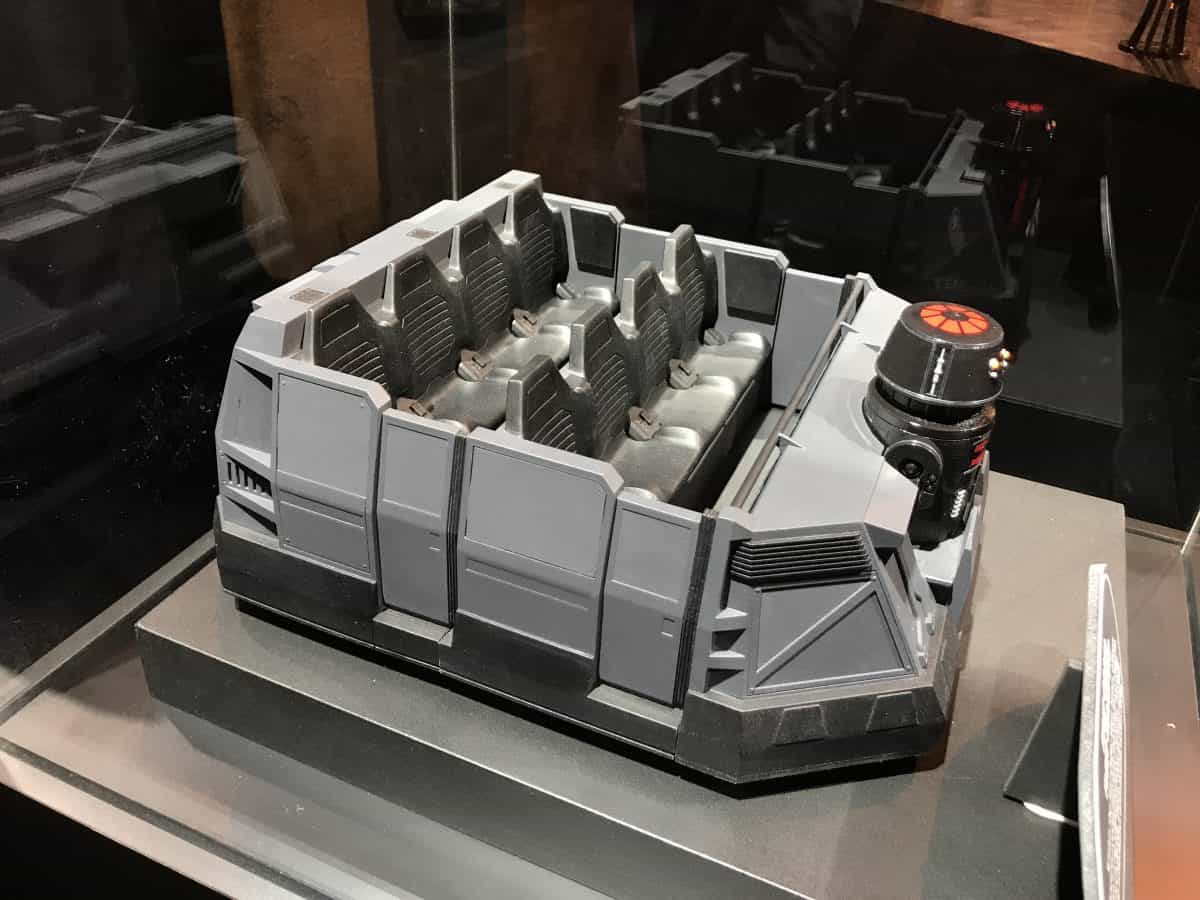 Revealed tonight at the D23 Expo 2017, we received our first look at the 8-person trackless ride vehicle for Star Wars Land’s massive E-Ticket attraction known simply to most as Battle Escape.
