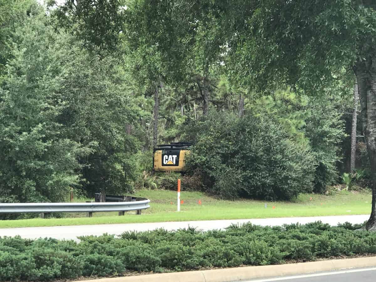Construction vehicles are present and a noticeable amount of shrubbery has been cleared in places. You’ll also notice a plethora of colored markers in the ground.