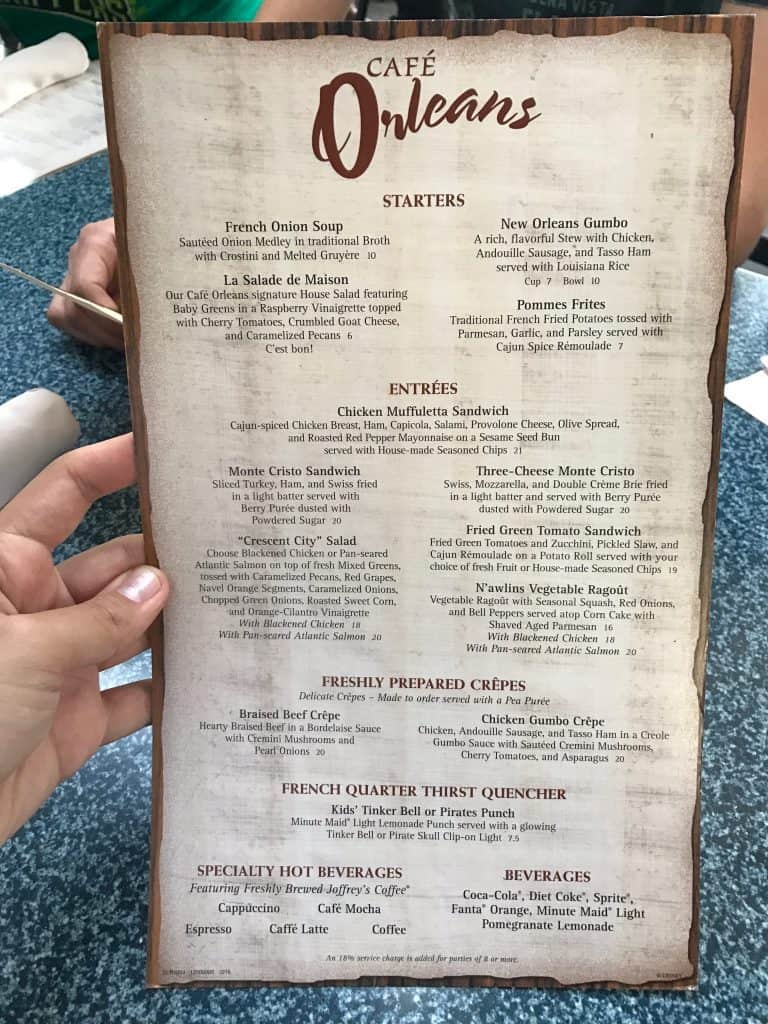 Blue Bayou is now an all-day menu, so it’s the dinner menu only and no Monte Cristo.