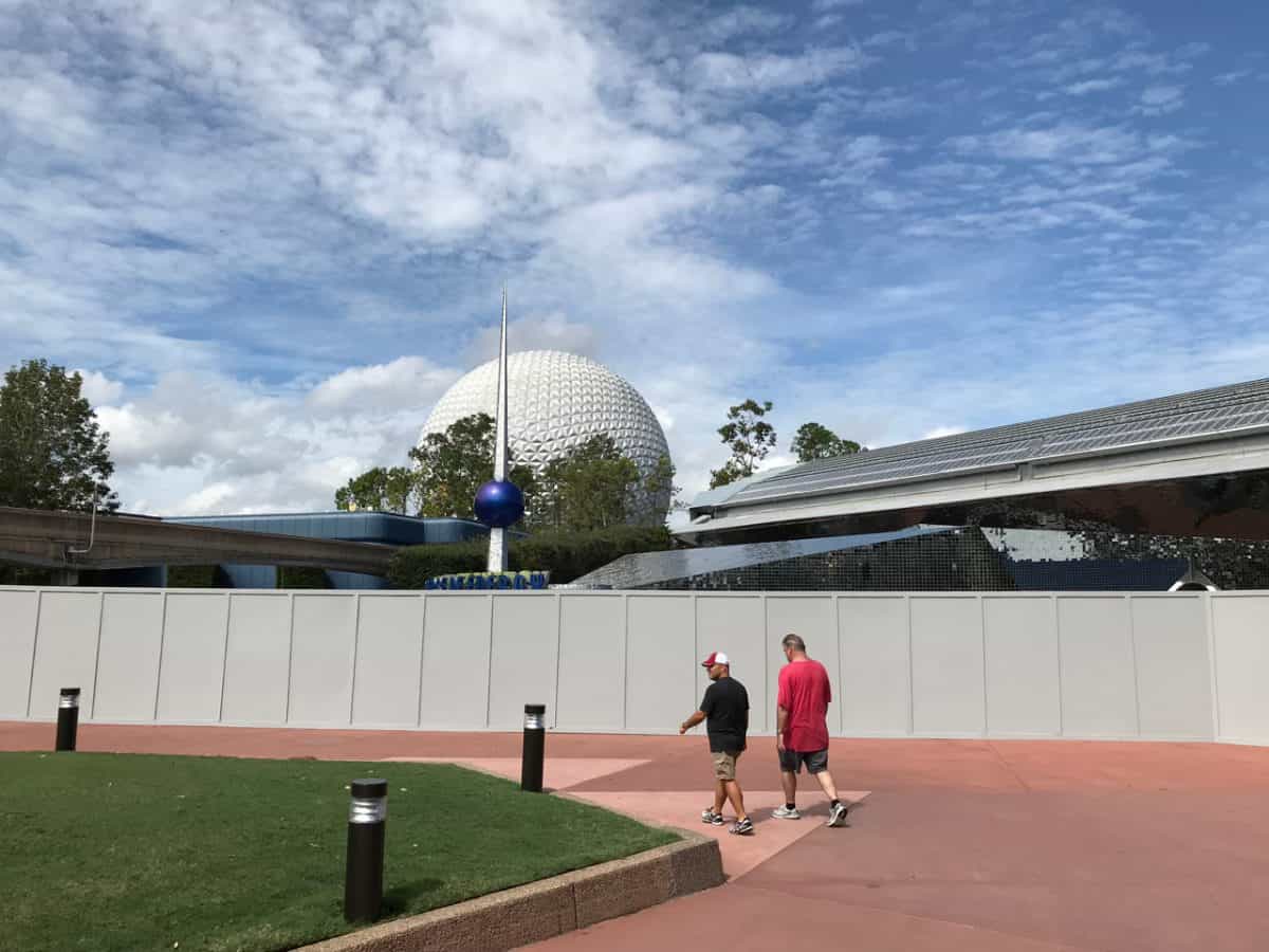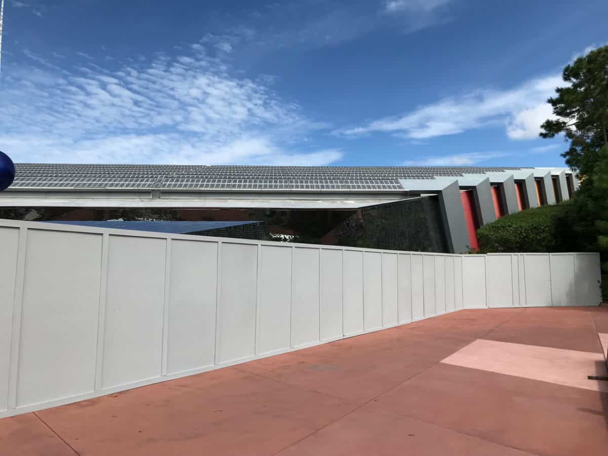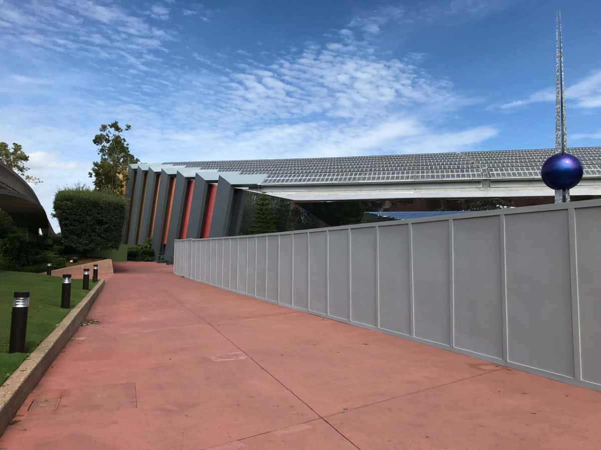 We made our way out to Epcot this afternoon to check out the former Universe of Energy pavilion. Walls have now gone up around the whole exterior of the pavilion as it gets ready for more intense work related to the Guardians of the Galaxy attraction. Check them out below!