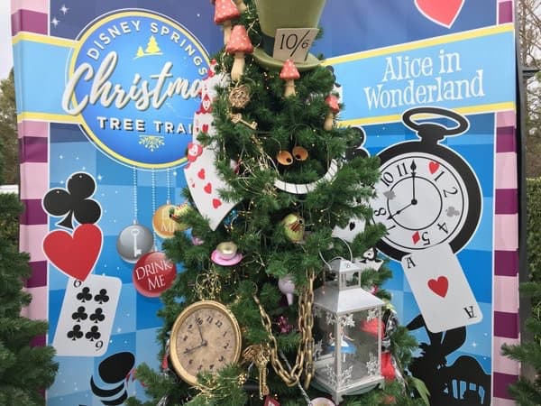 Alice in Wonderland tree at Disney Springs Christmas Tree Trail