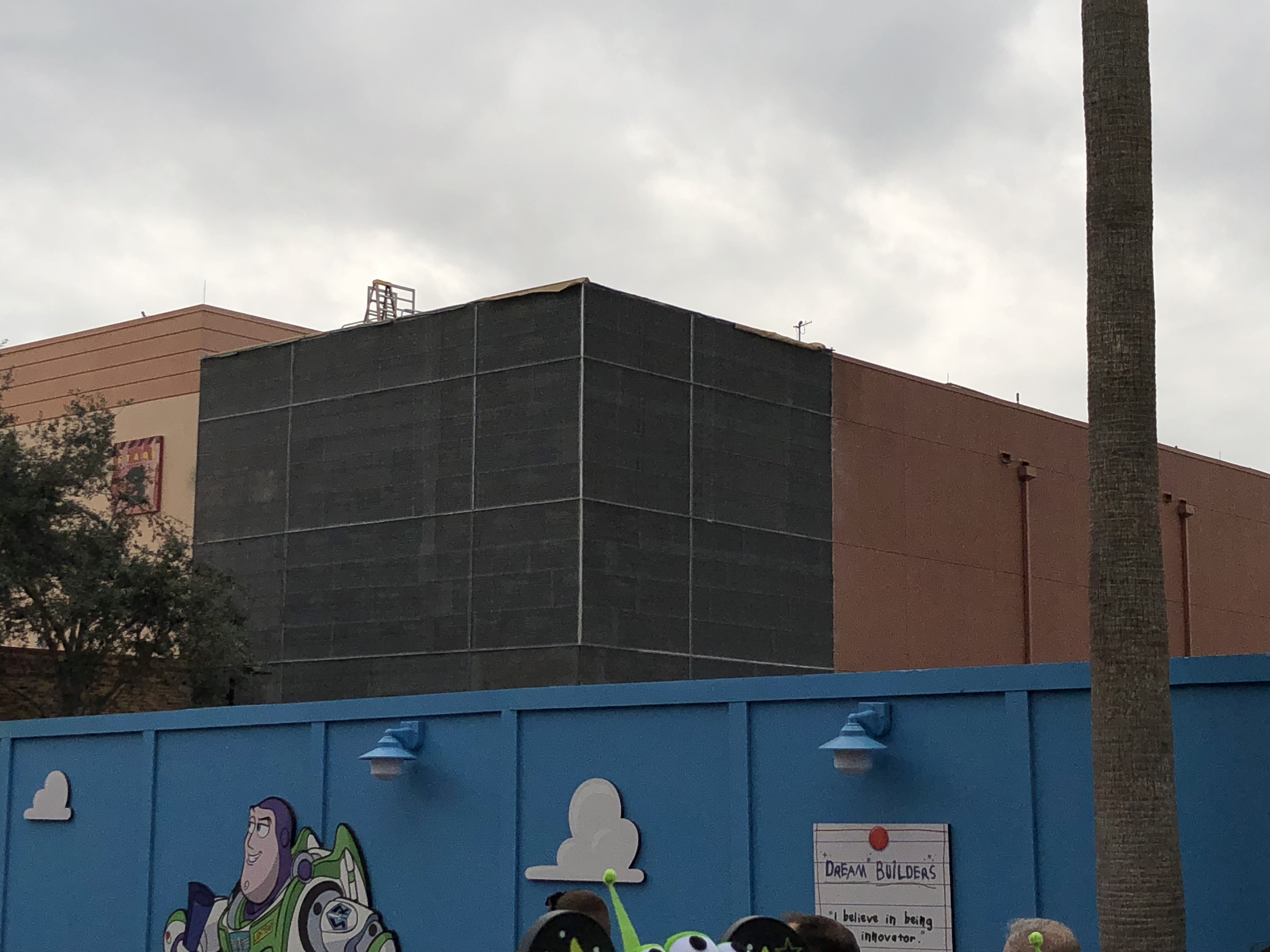 More stuff was thrown onto the left projection tower in the Center Stage area as Disney tries to make this thing look like it belongs there.