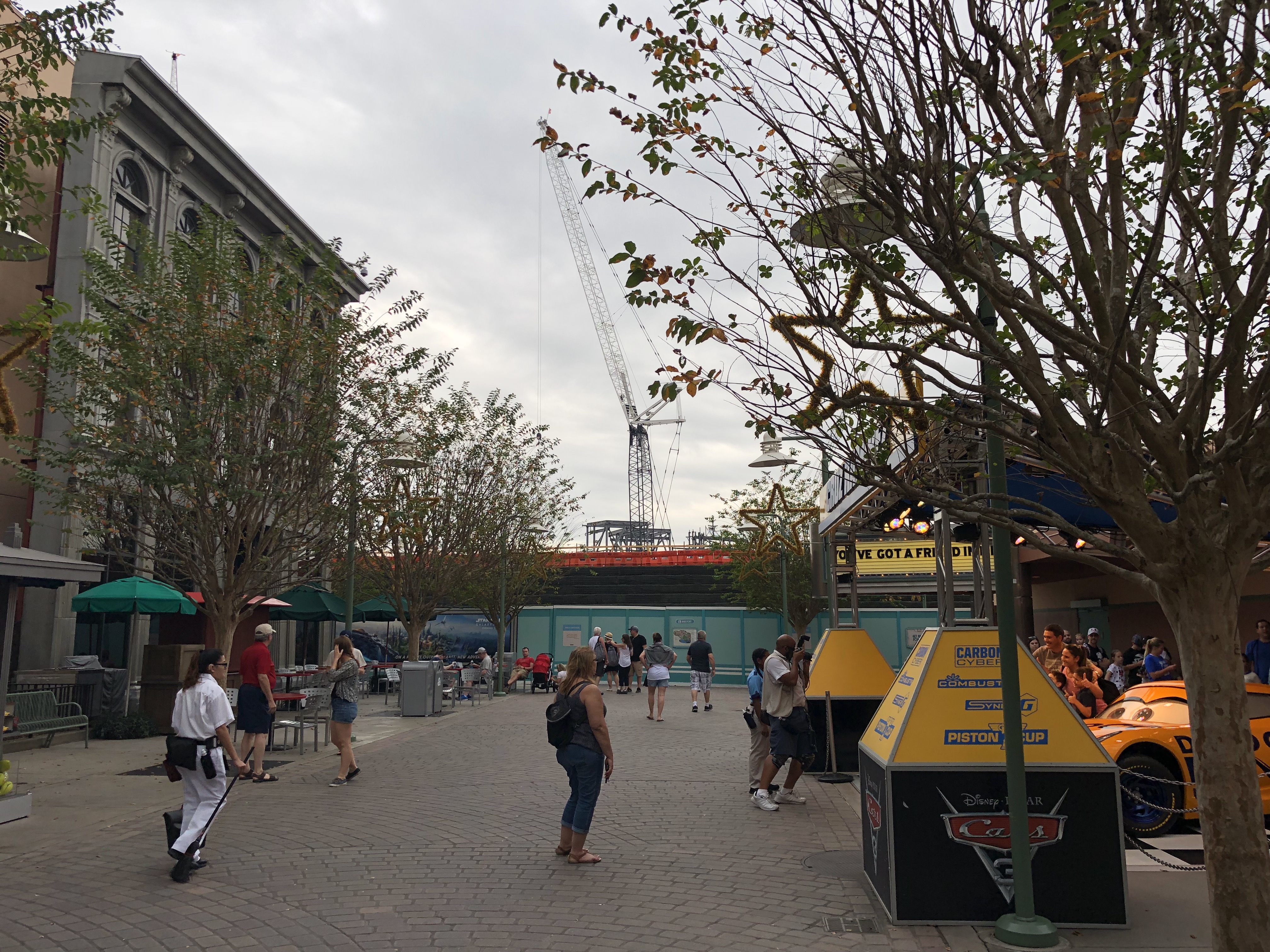 Star Wars: Galaxy’s Edge looms in the distance from PIXAR Place.