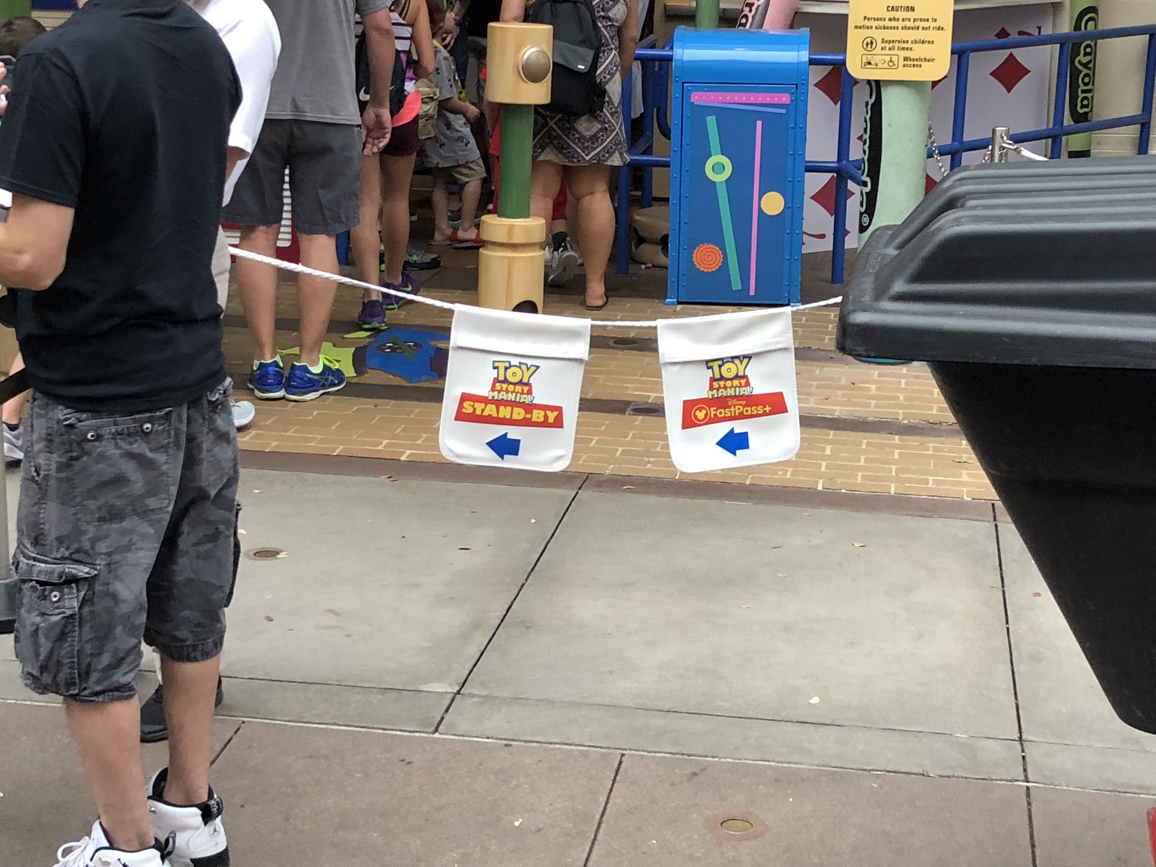 To help guests visiting Toy Story Mania, Disney added these rope signs. This is somewhat helpful as the average guest never seems to know where to go.