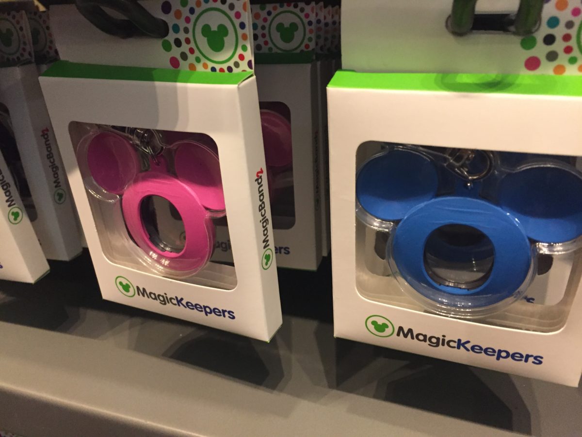 MagicKeepers, the MagicBand key chain, are now available in three new colors pink, purple, and blue! They retail for $12.99 the same as the original black version. No additional colors for the Minnie Magic Keeper has been spotted yet.