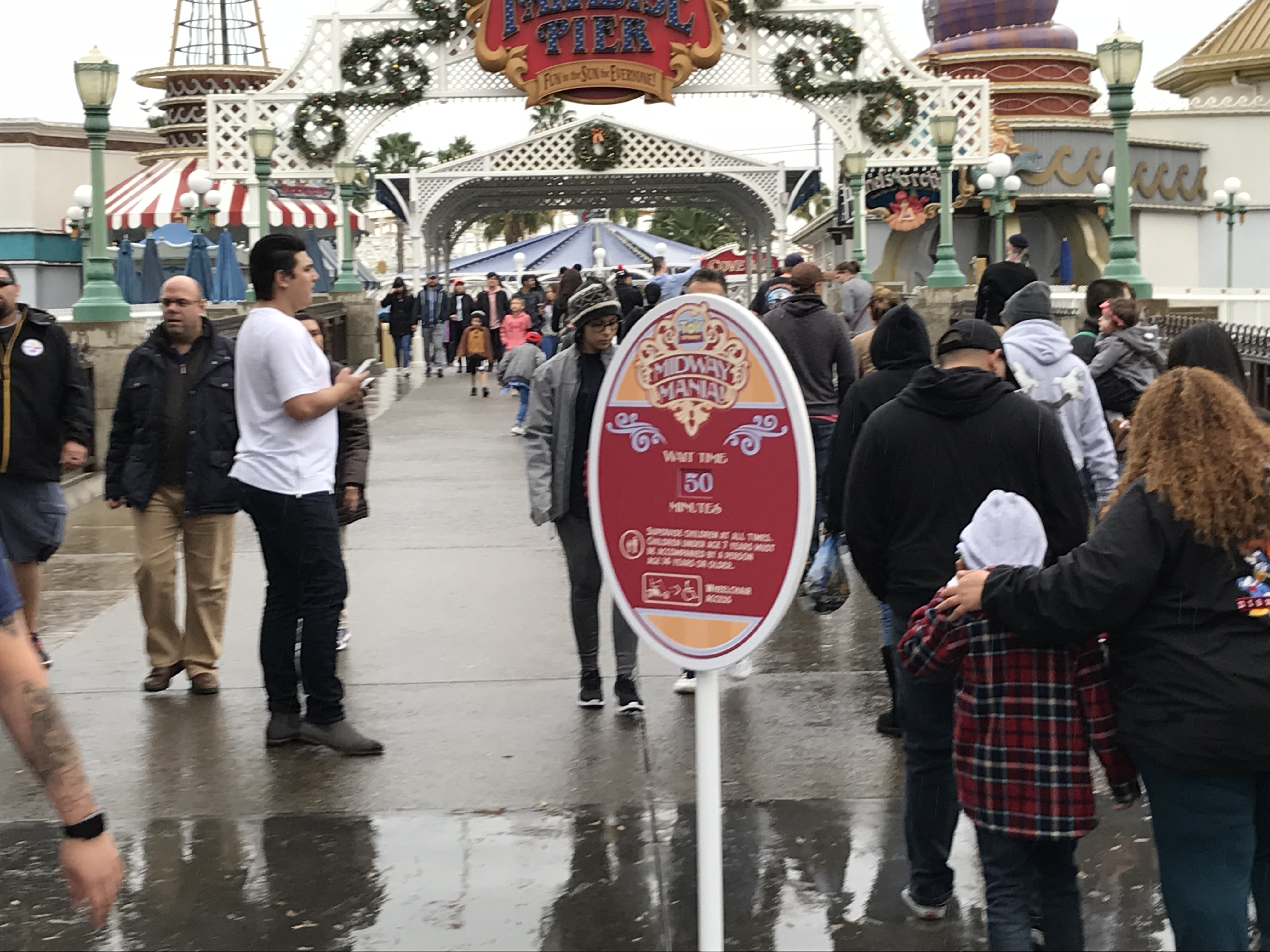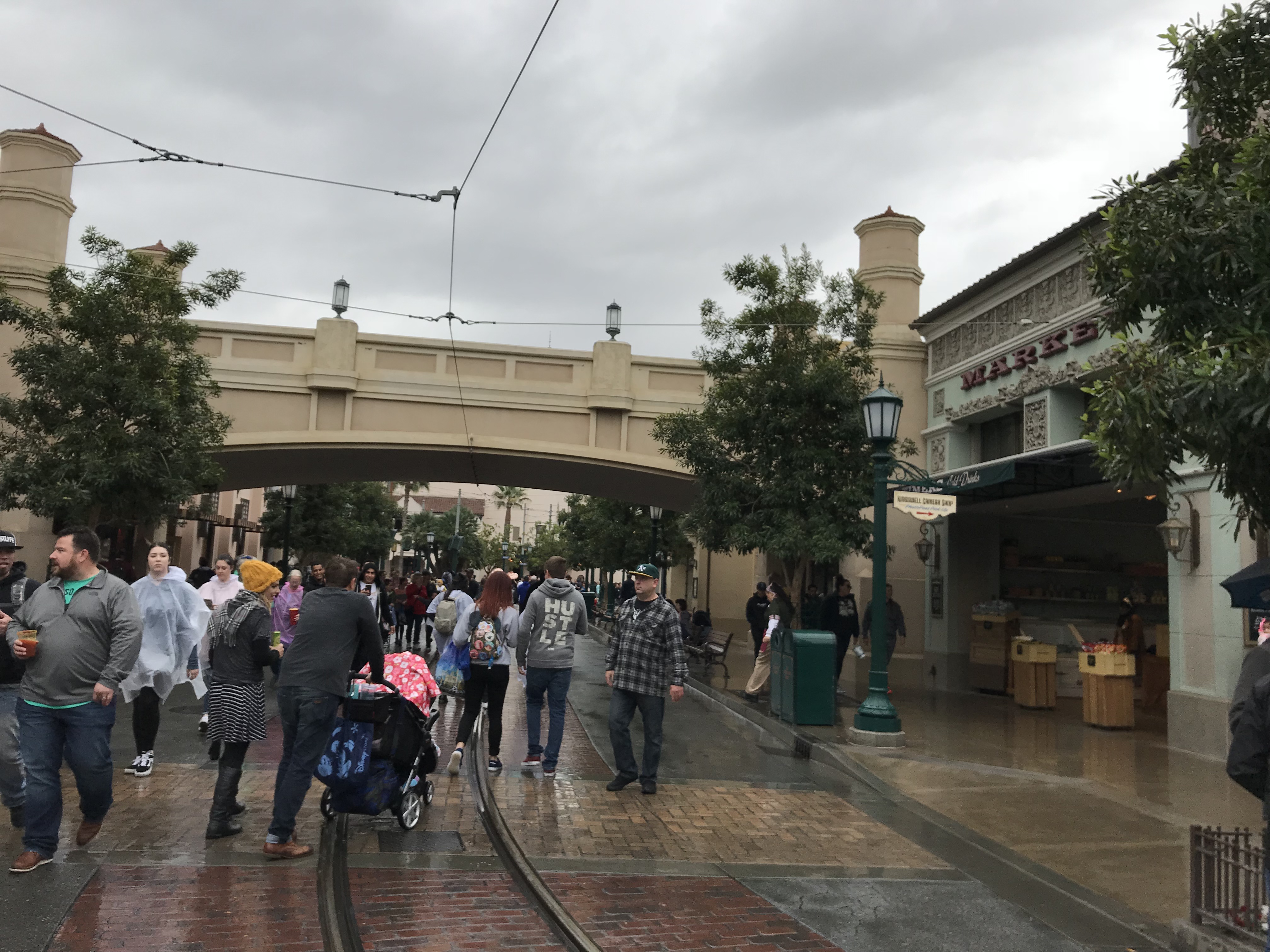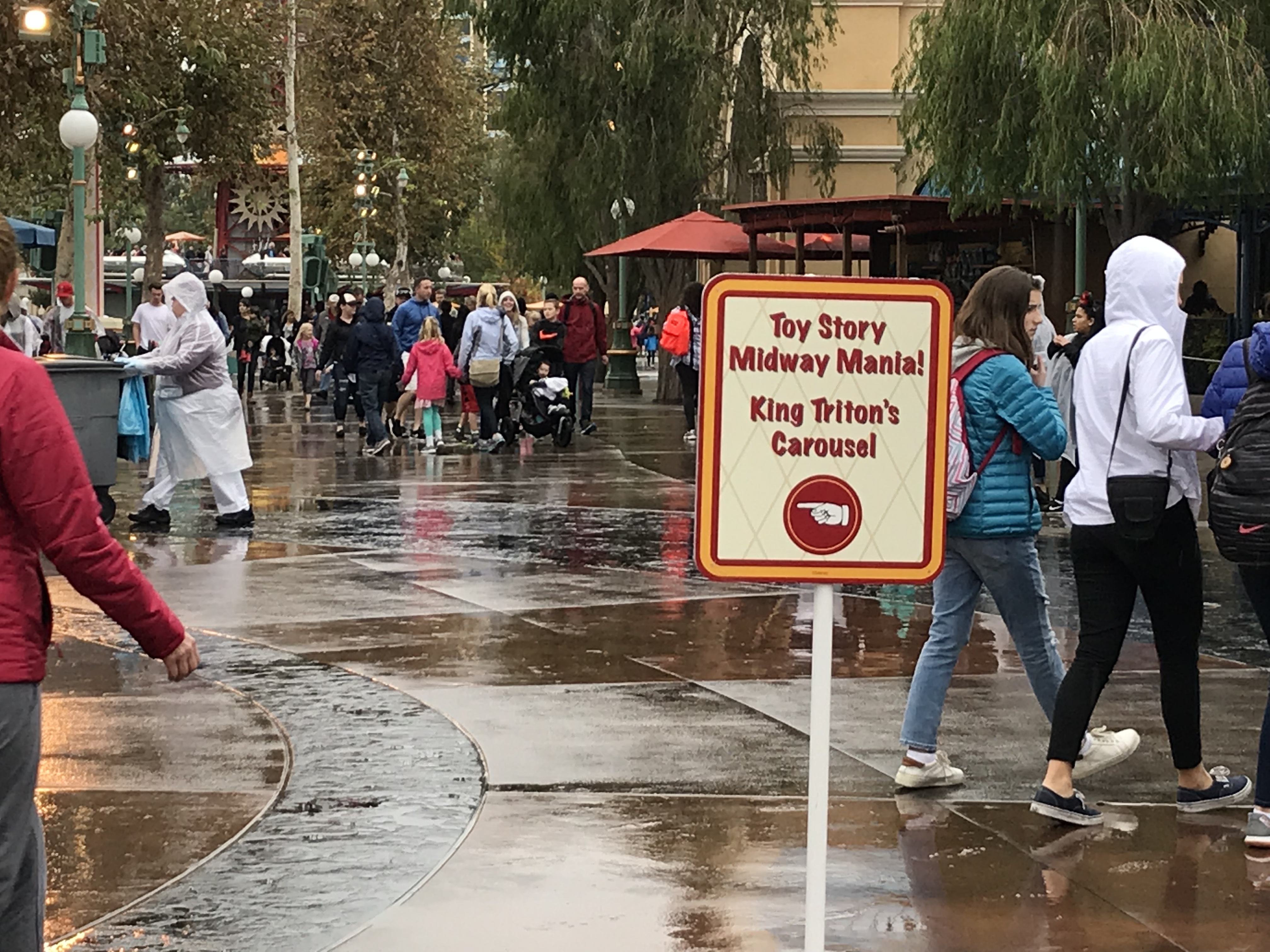 The wait time for Toy Story Mania is being posted at the foot of the bridge, so guest can decide if they will ride it before they head all the way down to this dead end.