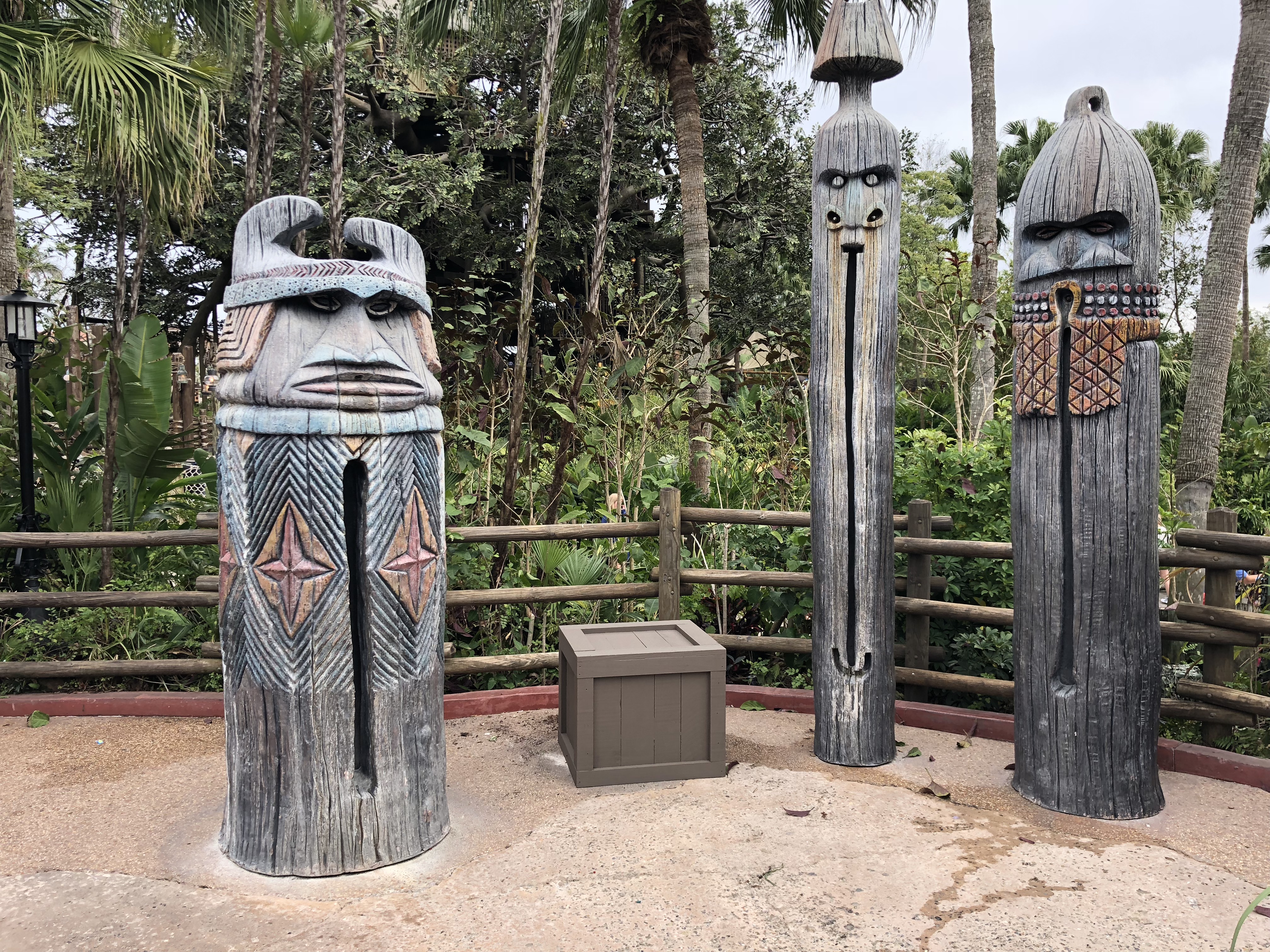 One of the Liki Tikis in Adventureland has been removed for maintenance.