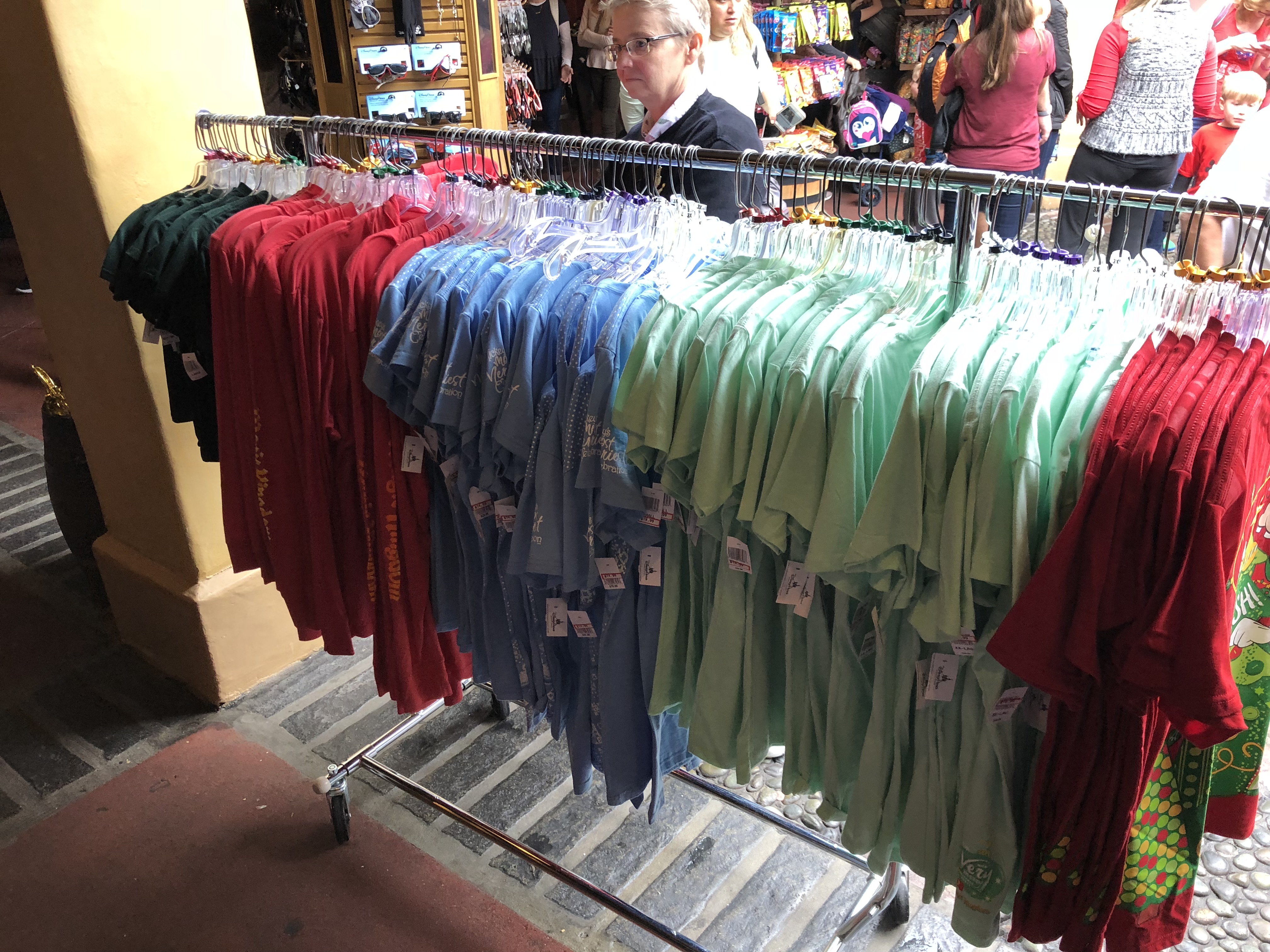 Remaining Mickey’s Very Merry Christmas Party apparel being sold in Caribbean Plaza for some reason. Some shirts were down to $14.99.