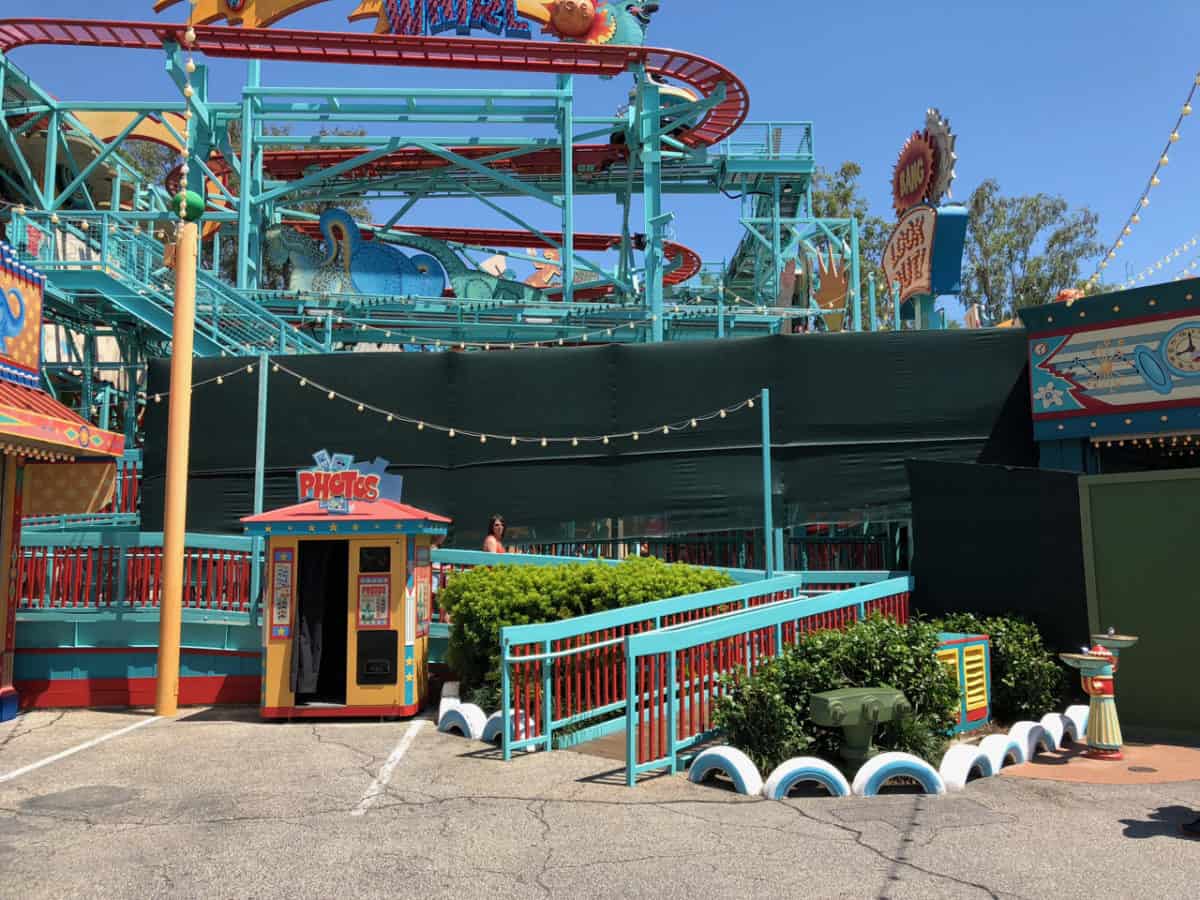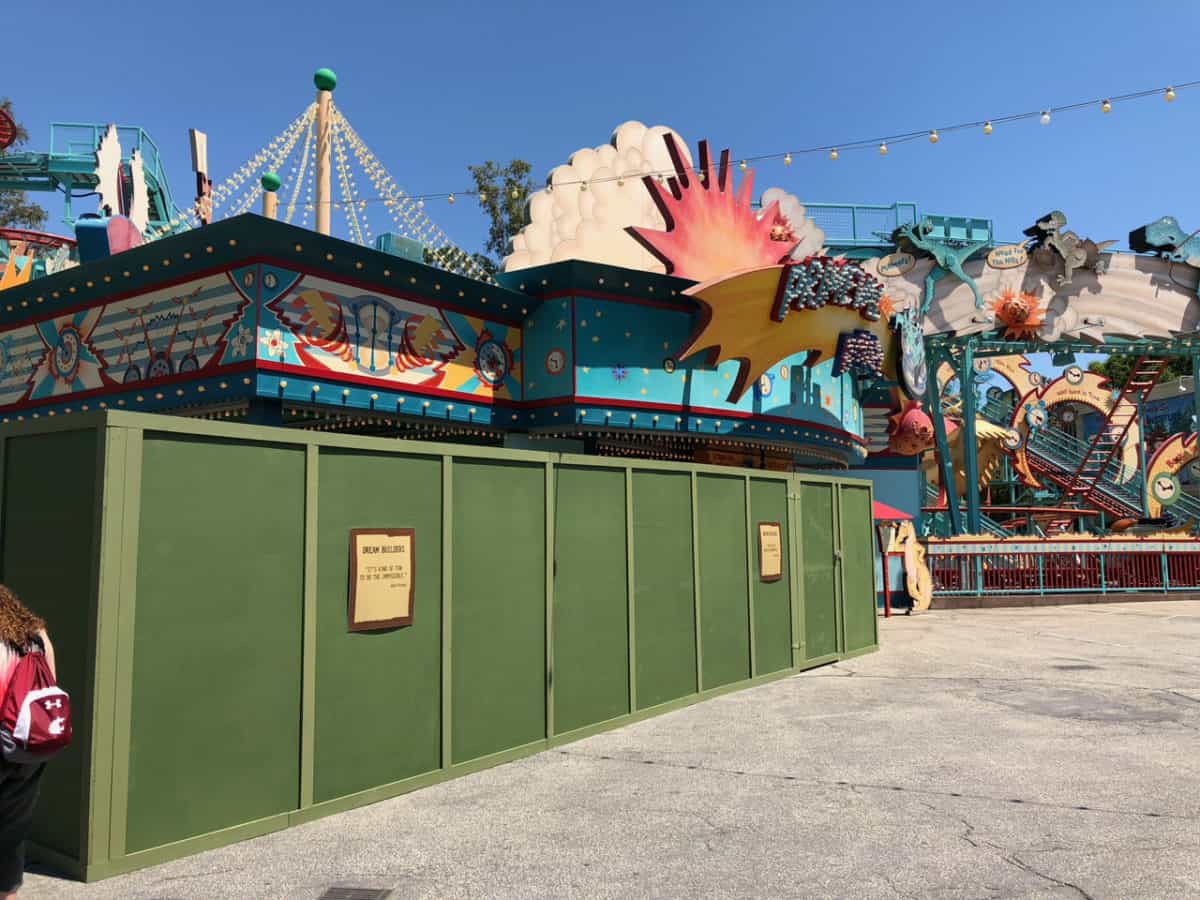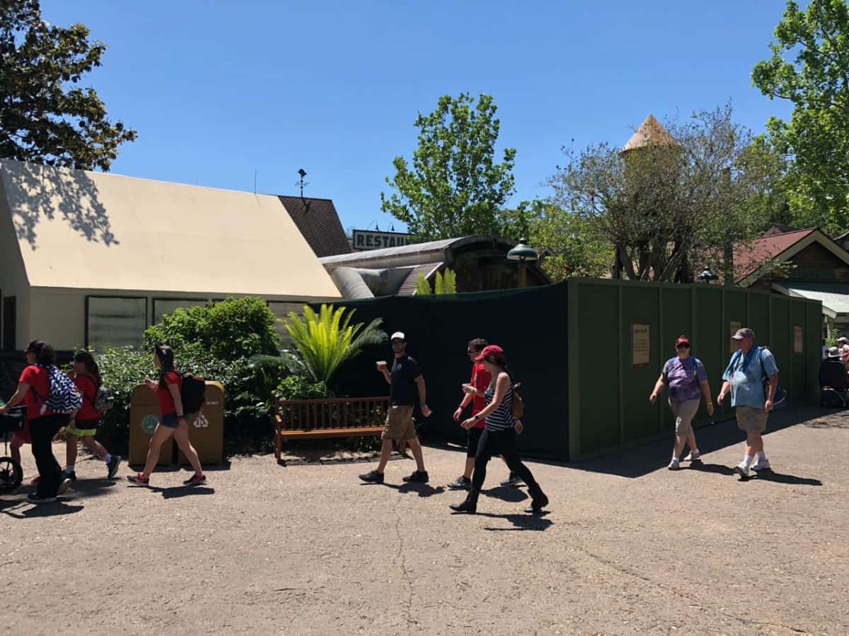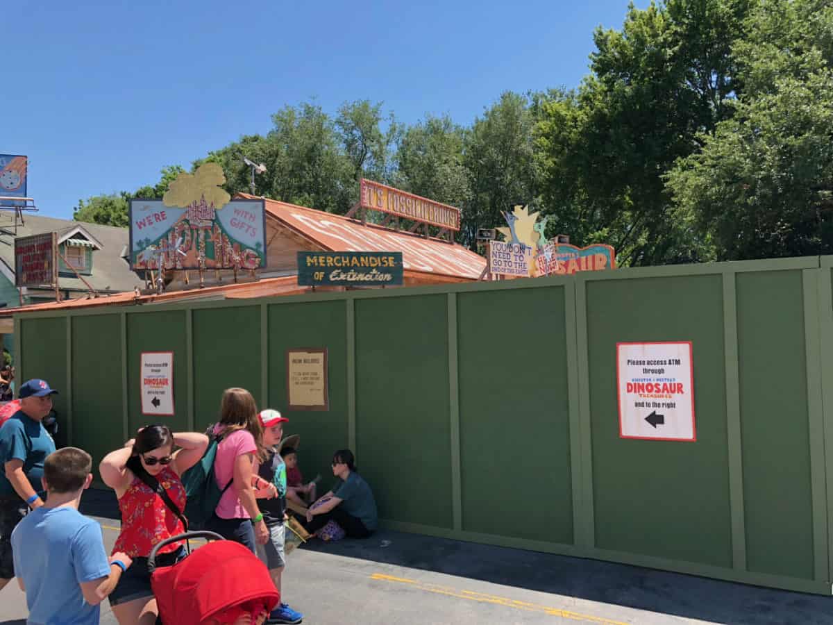 Over in Dinoland, construction walls are currently blocking the Primeval Whirl attraction entrance for some work but don’t worry, the attraction continues to operate through this work.