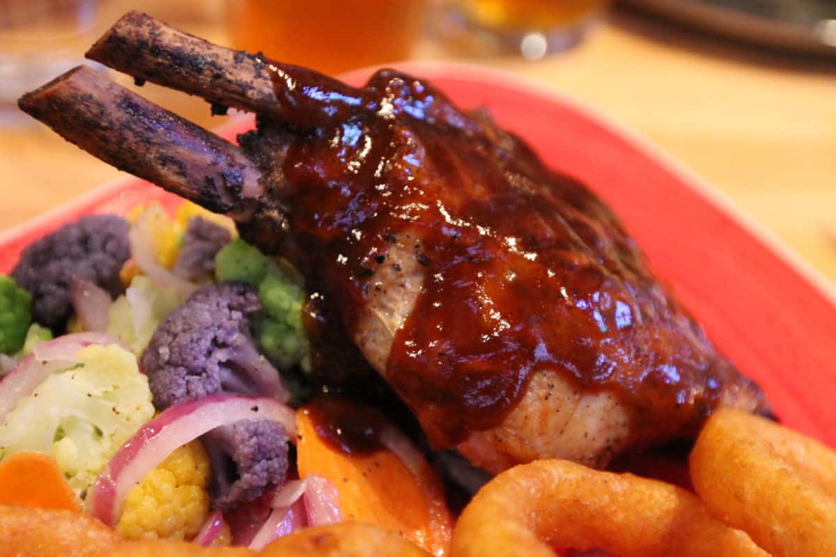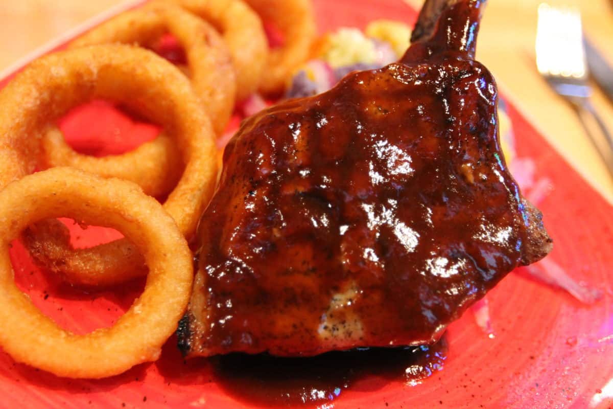 Double Bone-in Pork Chop – Tamarind-Barbecue Sauce, Sour Cream-Yukon Gold Mashed Potatoes, Seasonal Vegetables with Olive Oil and Sea Salt – $24.00