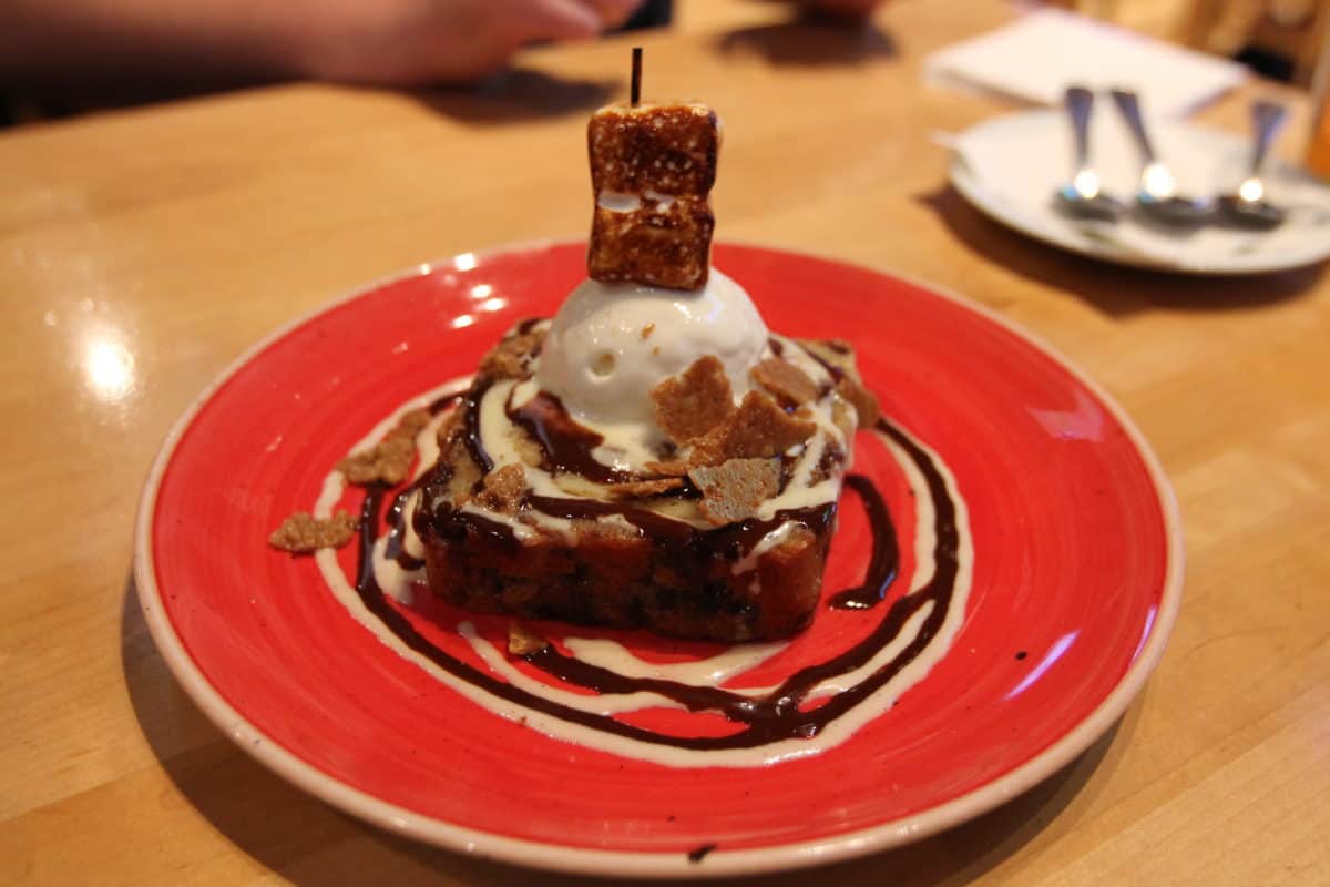 Believe the hype: this dessert lives-up to every expectation set forth in the description. For those who follow us on Twitter, we teased a review of this dessert on Tuesday afternoon. Not only is the bread pudding perfect, there’s ganache crumble sprinkled throughout the bread. The marshmallow ice cream on top adds a cold and creamy transition from the warm pudding. There’s two perfectly toasted marshmallows on top to add to the fun. Everything about this dessert screams summer and is a winner.