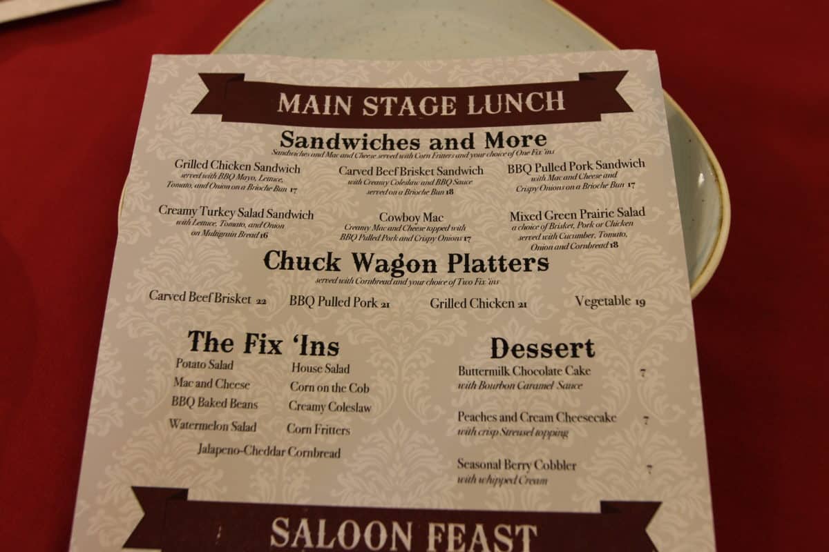 The Diamond Horseshoe is a table service restaurant at The Magic Kingdom. In 2016, after sitting vacant for many years, the Diamond Horseshoe finally began a nearly permanent dinner service. We reviewed dinner shortly after the premiere back then and it wasn’t good. Everything was pretty meh, which was disappointing knowing they share a kitchen with Skipper Canteen and Liberty Tree Tavern which are both spectacular. Last week the Disney Parks Blog revealed that a new menu was coming to Diamond Horseshoe, including A La Carte items. This was originally set to premiere on May 16th, but was pushed back to May 23rd. We ventured over on Wednesday to experience the new menu items. Please note, that even though the official Disney Parks Blog article doesn’t say these menu items are lunch only, they are indeed LUNCH ONLY.