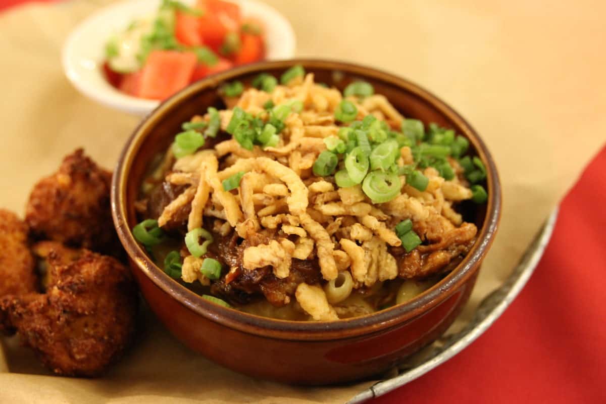 Cowboy Mac – Creamy Mac and Cheese topped with BBQ Pulled Pork and Crispy Onions – $17.00