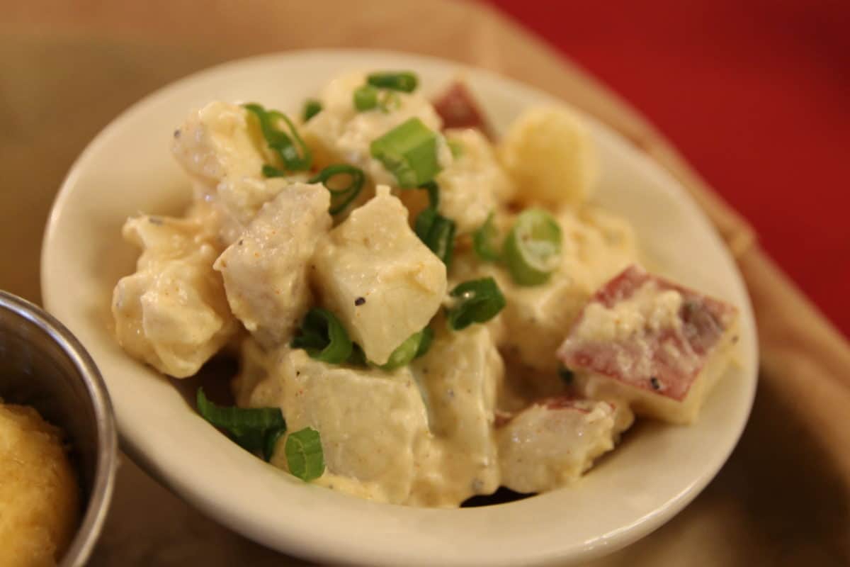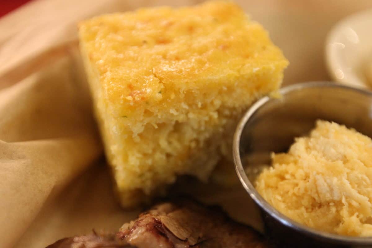 Since this is already served with the cornbread and jalapeno butter, we got more corn on the cob and the potato salad. There’s a LOT of meat on this plate, enough for our table of three to each have a piece with ample left behind for someone else to make a full meal. The cornbread was par for the course, nothing special like Trail’s End and not horrible like Cosmic Ray’s, but the jalapeno butter took it to the next level; it’s absolutely wonderful. The brisket was tender and cooked properly, and served with a side of either hot or sweet barbecue sauce which amplified the smoked flavor. We’re fans of potato salad, and this version was made with a sprinkle of ground chili powder giving a nice kick.