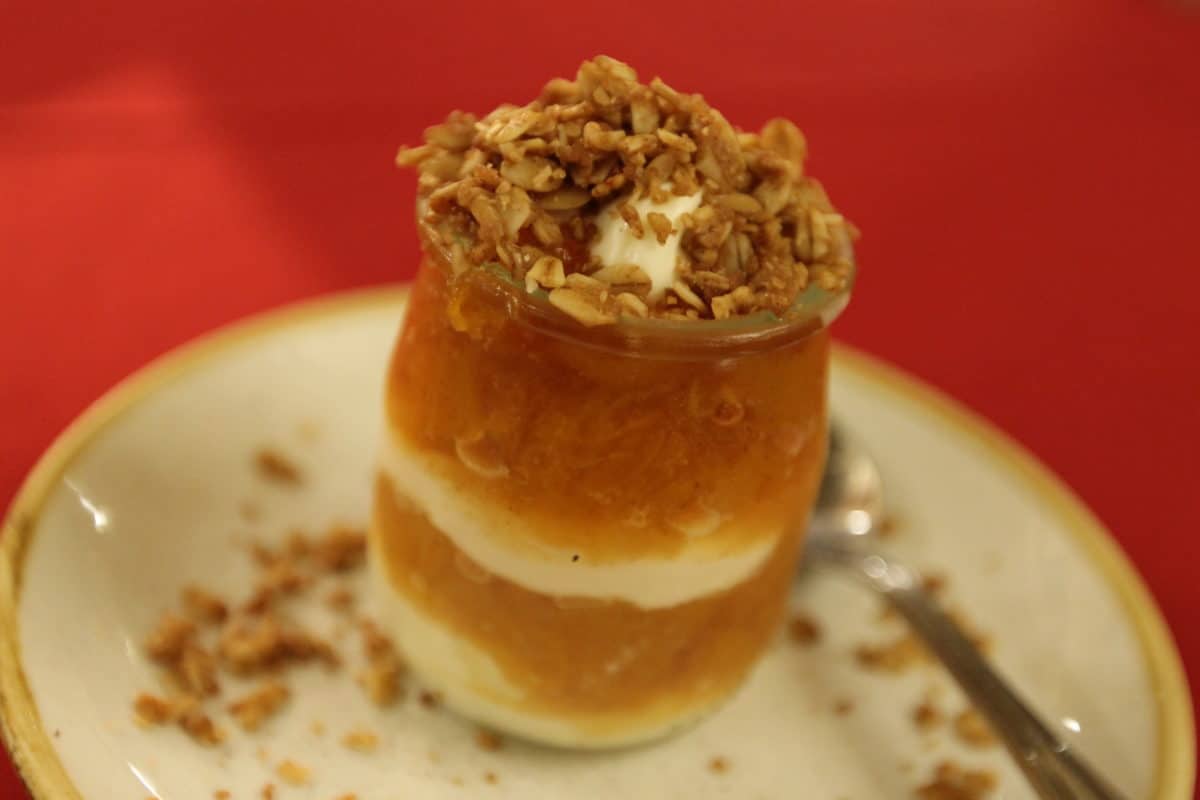 Peaches and Cream Cheesecake with crisp Streusel topping – $7.00