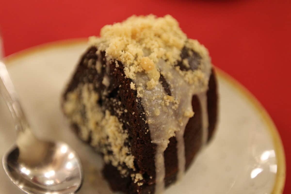 Buttermilk Chocolate Cake with Bourbon Caramel Sauce – $7.00