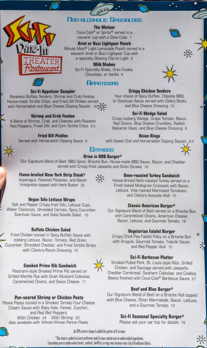 Sci-Fi Dine-In is a table service restaurant located at Disney’s Hollywood Studios. The restaurant is well-known and extremely popular with guests with its wacky and cool theme of placing you in an actual drive-in theater to enjoy your meal.