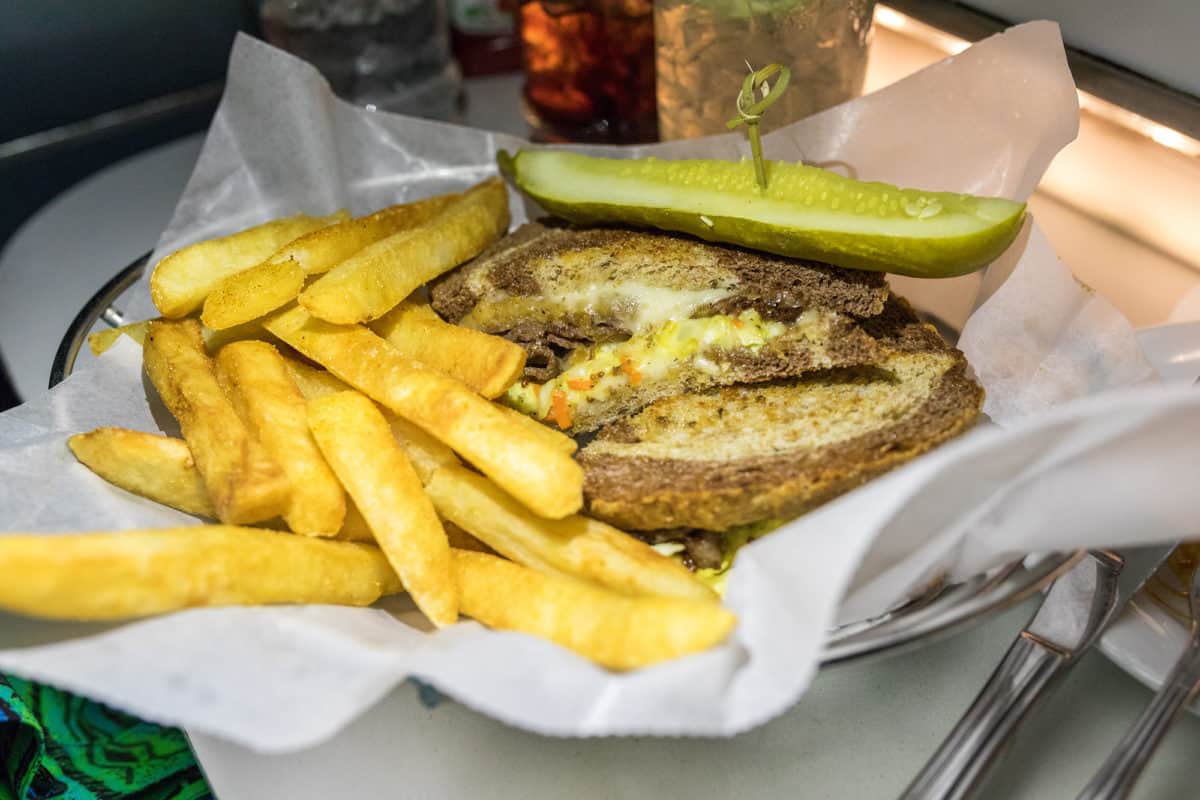 There’s a little too much coleslaw on this sandwich. The smoked prime rib is fine in itself, nothing too special. What’s really an issue with this sandwich is the mixture of the coleslaw, rye bread, and meat. There’s no chance for the cheese or onions to even play a part when everything else is competing for attention. It’s better to pass on this entree, even if the fries are really good.