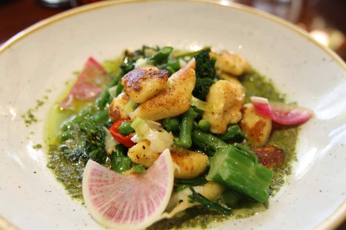 House-Made Gnocchi Primavera – Potato Gnocchi, Garden Vegetables, Basil Pesto, and Parmigiano-Reggiano – $21.00