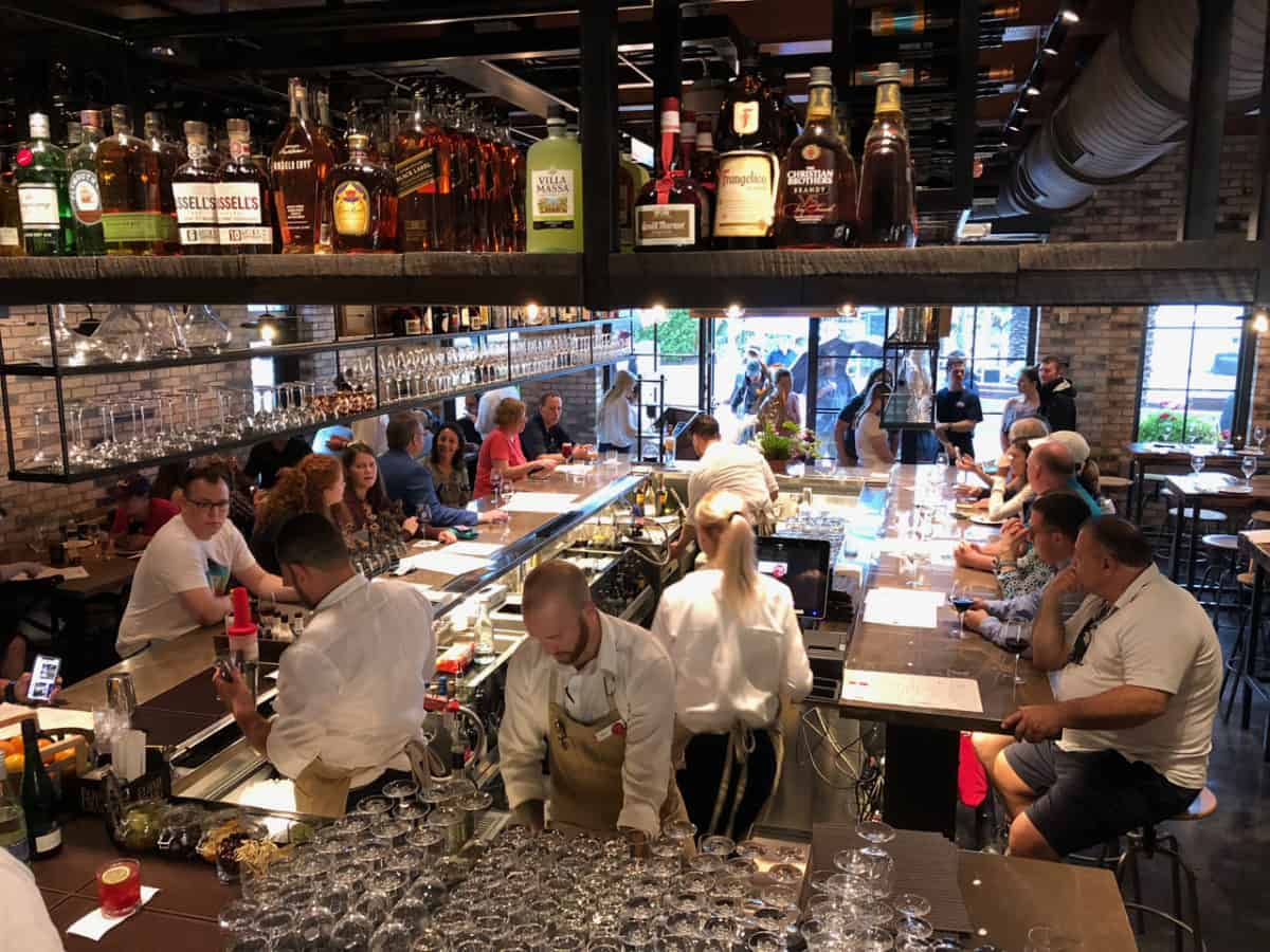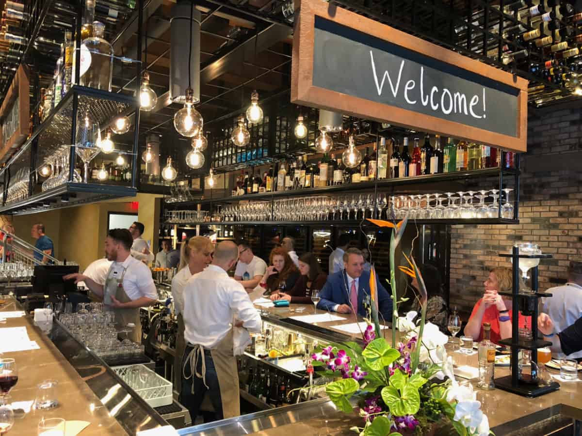 Wine Bar George opened this past weekend at Disney Springs. The highly-anticipated bar brings The Landing section one step closer to completion (once Terralina Italian opens this summer). George Miliotes is at the helm of this new wine destination. You may recognize his name from the team that led California Grill at Contemporary Resort to become one of the best destinations in the world for food, wine, and sushi (before it was cool). George brings his master sommelier skills to the table here with rare, tasty, and interesting wines and pairings. We stopped by on opening weekend to examine the new digs at Disney Springs.