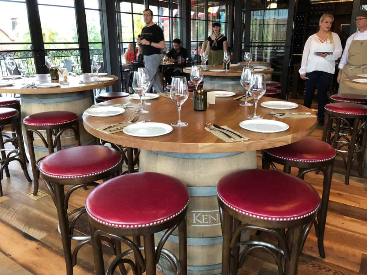 Most of the table seating is upstairs, with these very cool “barrel” tables that seat six people.