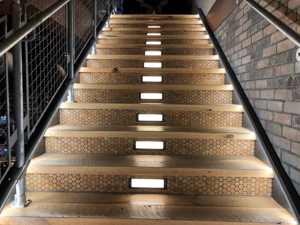 The stairs are decorated with wine corks and are really stunning in person.