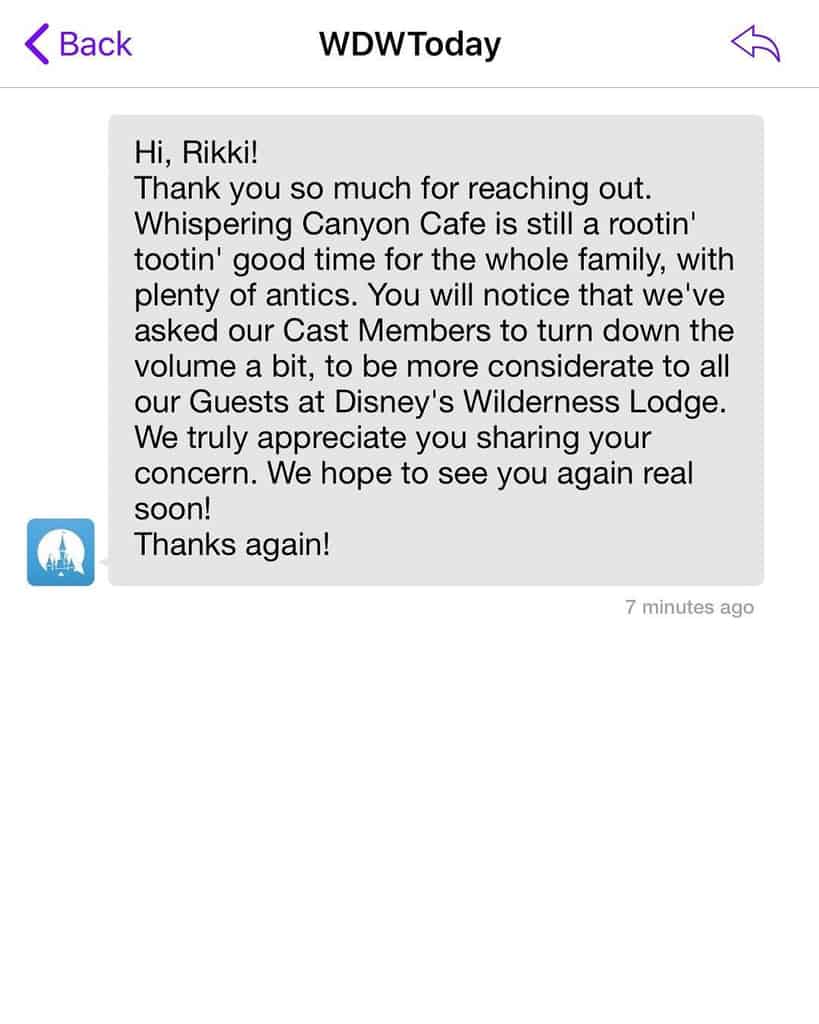 In an update to the story we broke a few days ago, confirmations continue to come in that the antics at Whispering Canyon Cafe are changing. According a user on Instagram, when she asked about these changes, she was met with this response from WDWToday: