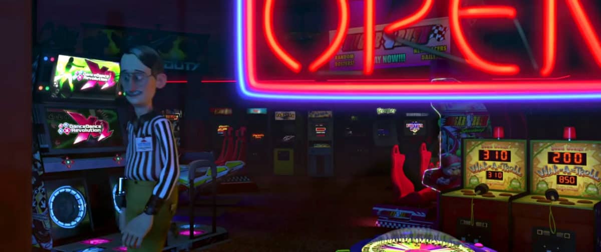 Here is a familiar location for fans of the original Wreck-It Ralph. It’s the interior of Litwak’s Family Fun Center & Arcade! And of course we see the proprietor, Mr. Litwak with his familiar referee inspired shirt. But, I doubled checked and this is not a new scene at all, but one from the original Wreck-It Ralph movie.