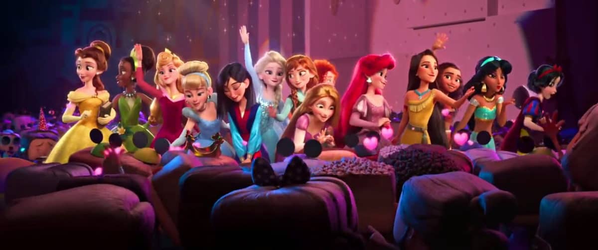 And there’s the money shot! Every single Disney Princess on screen together for the first time. Can you name them all? Merida seems to have gotten jipped in this shot, and she doesn’t look happy either. Some of these blockheads in the audience have Mickey ears.