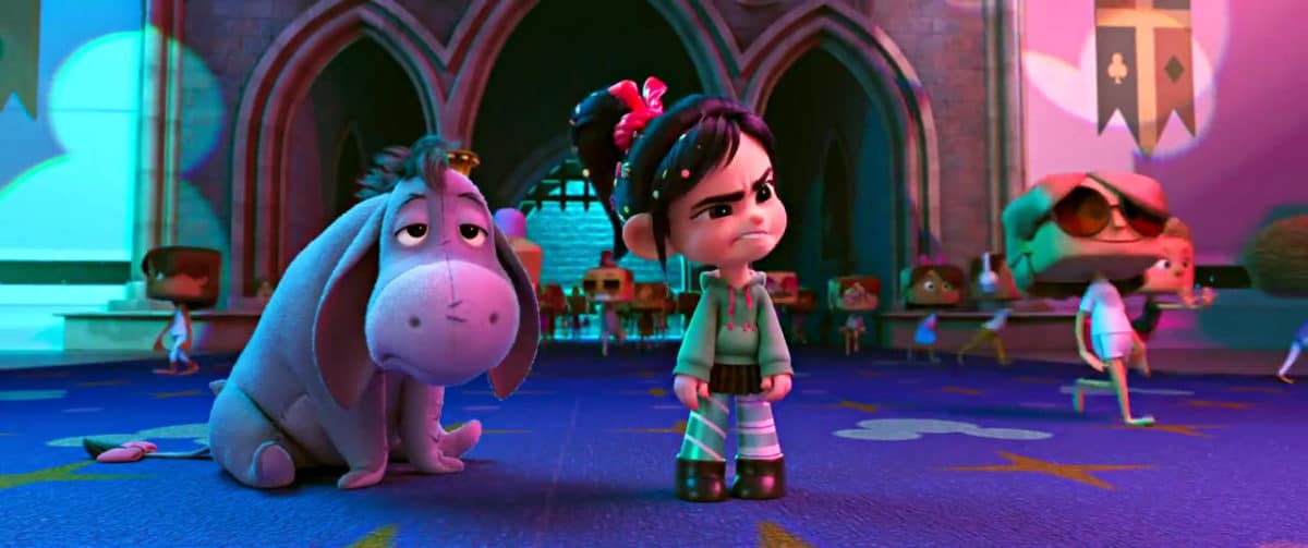 Vanellope doesn’t seem to be a fan of princesses and cartoon characters, which is weird, because she is both. Eeyore appears to take Vanellope’s comments personally.