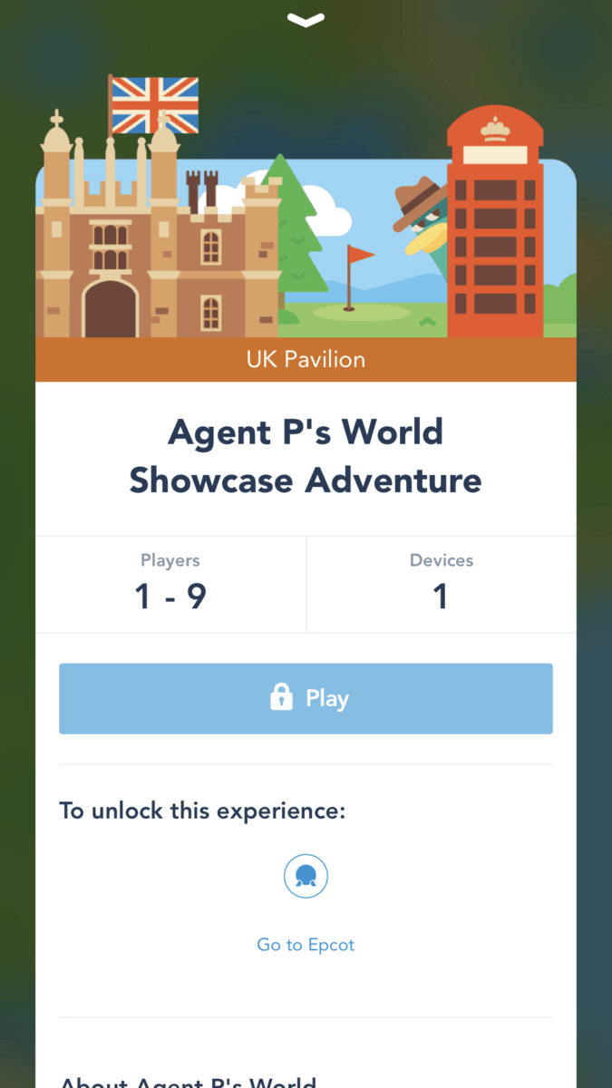 At Epcot you can trigger Agent P’s World Showcase Adventure from the app.