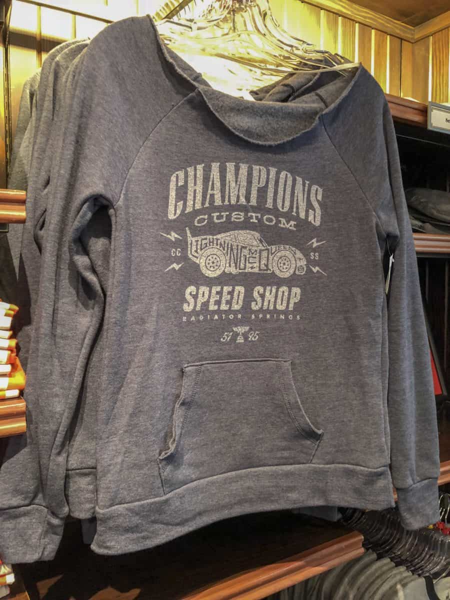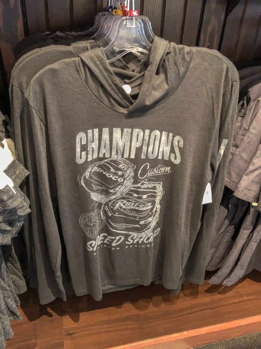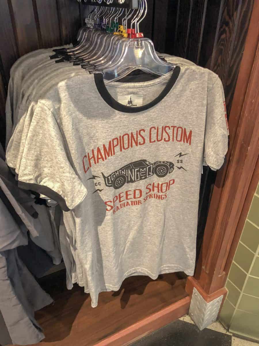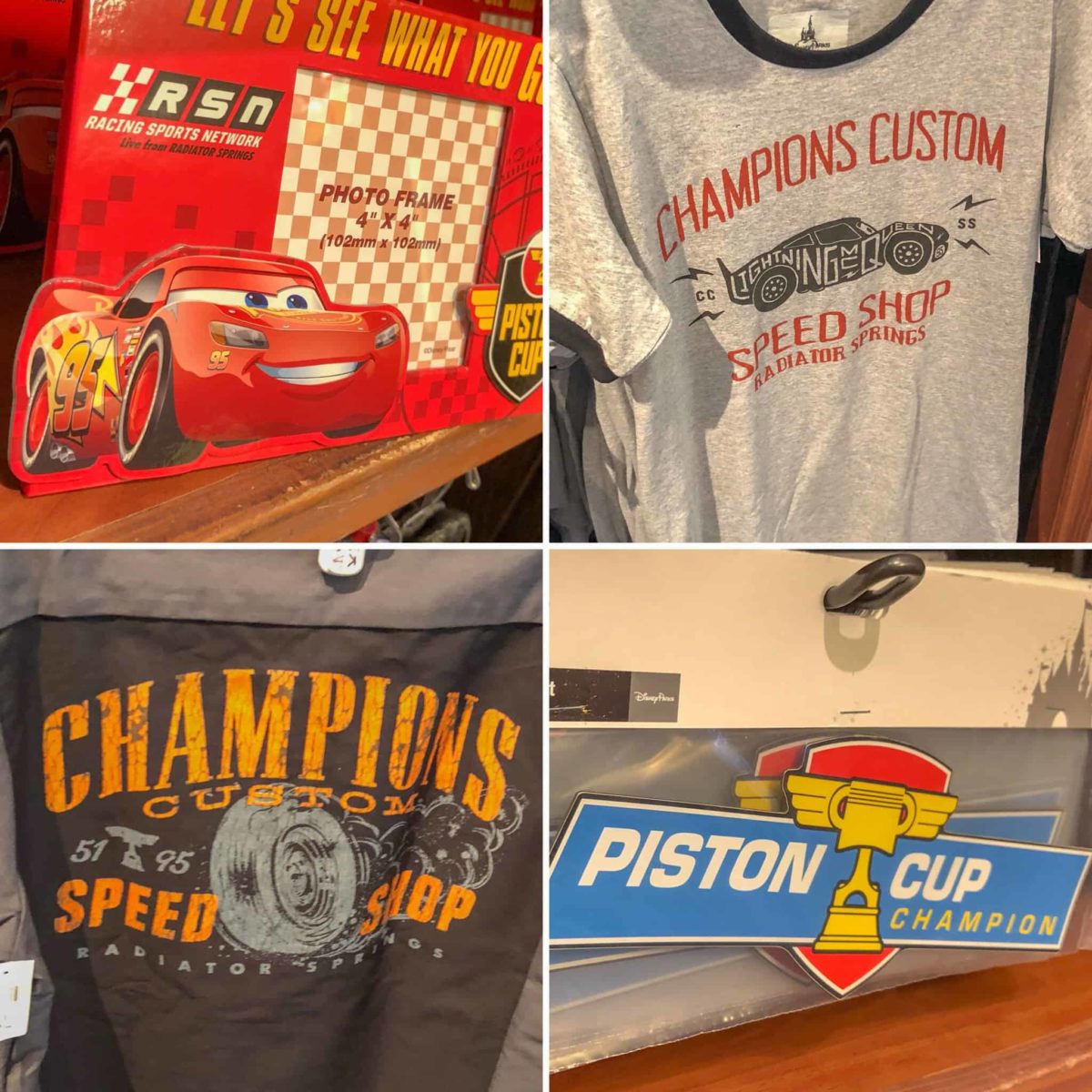 Fresh off the heels of a recent new drop, there’s a brand new line of Cars Land merchandise at Disney California Adventure Park. This line features our favorite racer, Lightning McQueen, as well as a ‘Champions Custom Speed Shop’ logo that’s across numerous pieces and a bunch of Racing Sports Network stuff. Check out the pictures below!