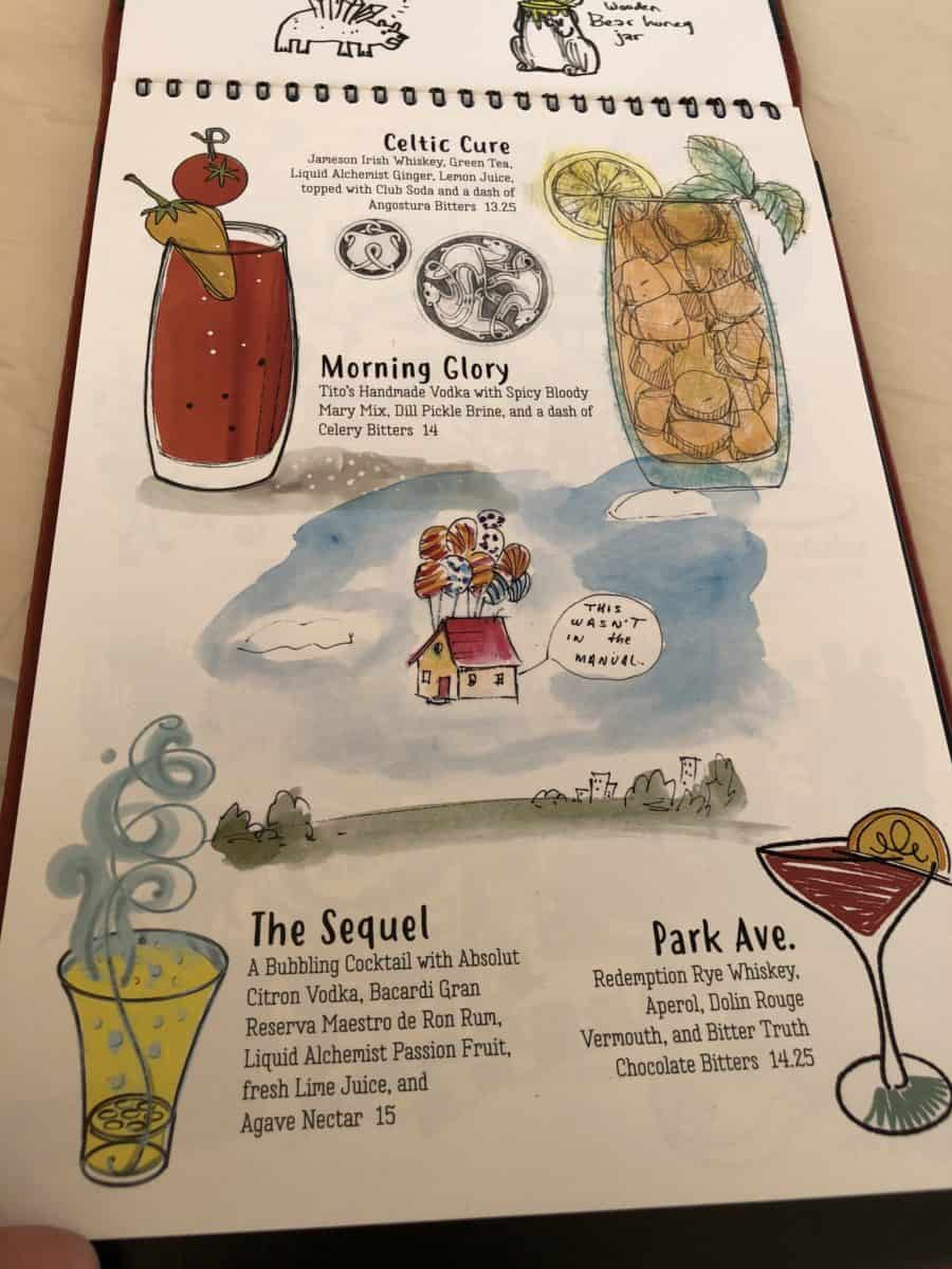 Lamplight Lounge is a brand new table service restaurant and lounge on Pixar Pier at Disney California Adventure Park. This location replaces the previous tenant, Ariel’s Grotto, which housed character dining on the lower level and The Cove Bar on the top. The Cove Bar was famous for well-made drinks and lobsters nachos. While this location doesn’t do character dining anymore, there’s more than enough character to the restaurant with countless Pixar sketches, concepts, and art adorning every wall and surface. Tom stopped in during the special Pixar Pier Premiere event and tried the new offerings at the upstairs lounge, offering drinks and small bites.