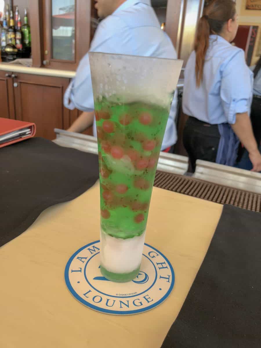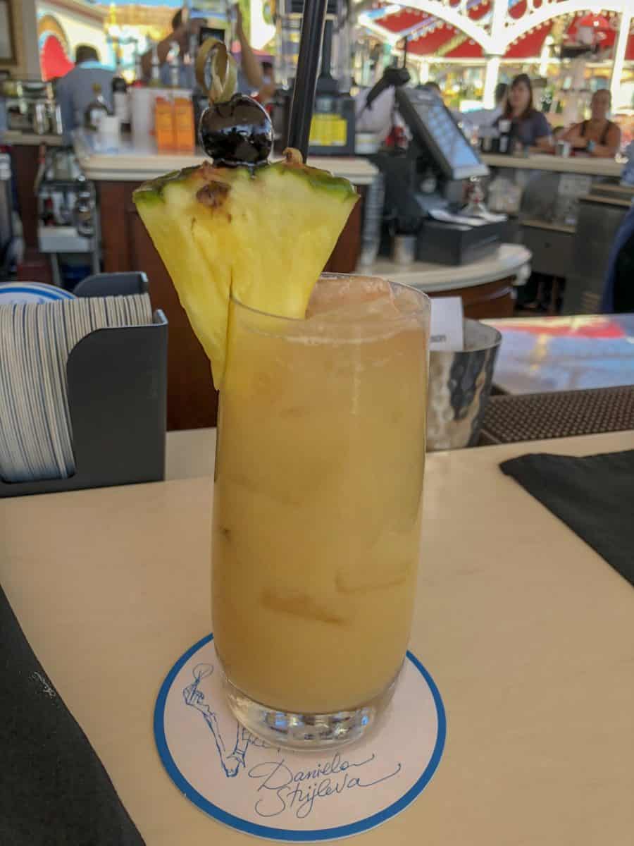 This is Pixar Pier’s idea of a mule, and it’s a darn good one. Served in a glass that even looks aged, this drink is heavy on the vodka which is a good thing for the price tag. The passion fruit doesn’t play as big a factor as we would have liked, but behind the lime juice you’ll taste the lingering passion fruit. It’s a great drink and mixed well.