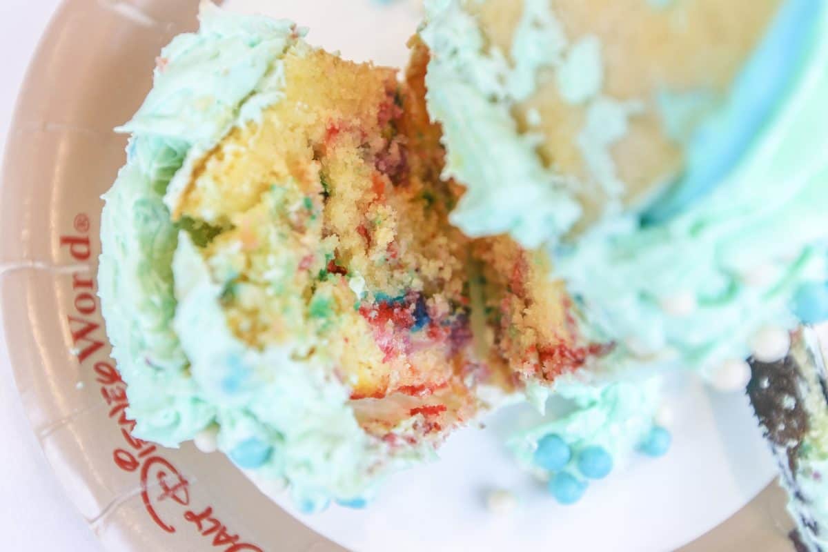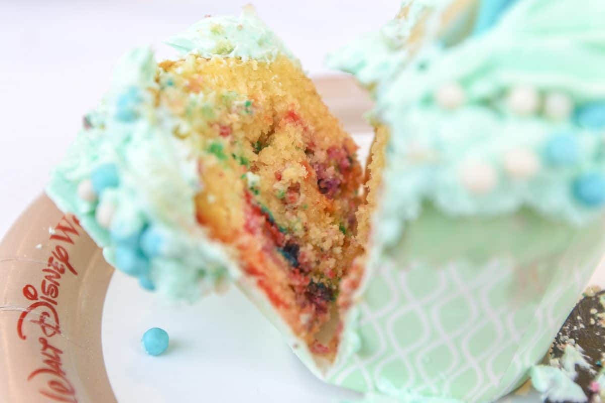 It’s a funfetti cupcake, yay! We love funfetti and this certainly takes the cake, erm.. cupcake. The buttercream icing would have been great ice cold, but it was rather melted by the time we were able to dig in. If you buy one of these, we recommend eating it rather quick, especially in the hot Florida sun. Ironically, the best part of the cupcake wasn’t even the cupcake, it was the mermaid tail cookie on top. It was perfectly soft and melts in your mouth. It’s absolutely wonderful.