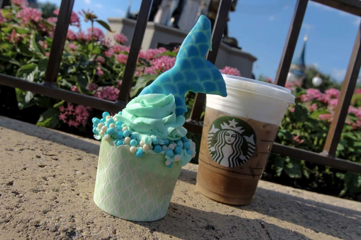 What’s a new cupcake and why does it, what’s the word… sparkle? Well, a new cupcake has appeared at the Magic Kingdom’s Main Street Bakery; this time taking shape as a mermaid tail splashing back into the ocean. How many wonders can one cupcake hold? A lot it seems, as there’s quite a bit going on here.