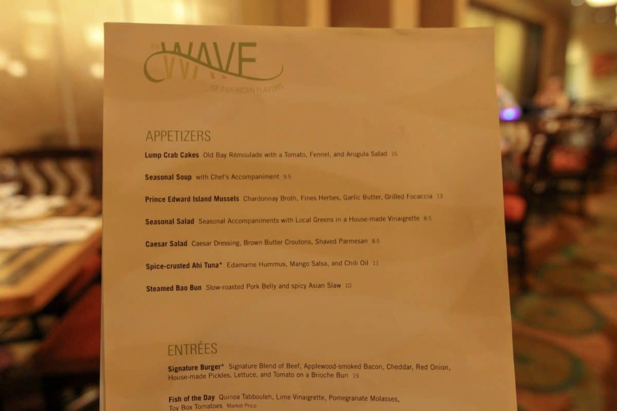We love The Wave… of American Flavors. It’s a table service restaurant on the first floor of the Contemporary Resort that specializes in locally-sourced and seasonal foods. Known simply as ‘The Wave’, we’ve long been fans of their breakfast buffet which features Tillamook Cheddar Cheese grits and their famous sweet potato pancakes. While we often visit The Wave, it’s not quite often we review the restaurant. A group of us stopped by for lunch last week to change this.
