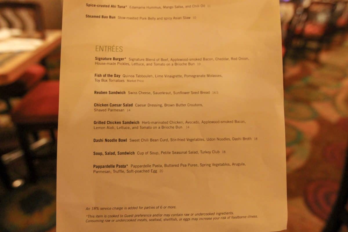 The fish today was grouper, and it’s a relatively small cut especially for the price associated. Disney has been doing away with the ‘market price’ on menus for the last few years, it’s interesting to see The Wave return to an option like this. We were displeased to learn these toy box tomatoes are, in fact, NOT from Toy Story Land. Missed synergy if you ask me. Anyway the grouper was well cooked, albeit a small portion, but what the dish lacked in fish it made up for in an endless pile of quinoa. Everything was quite good together, it’s just hard swallowing a $26 price tag for a lunch entree.