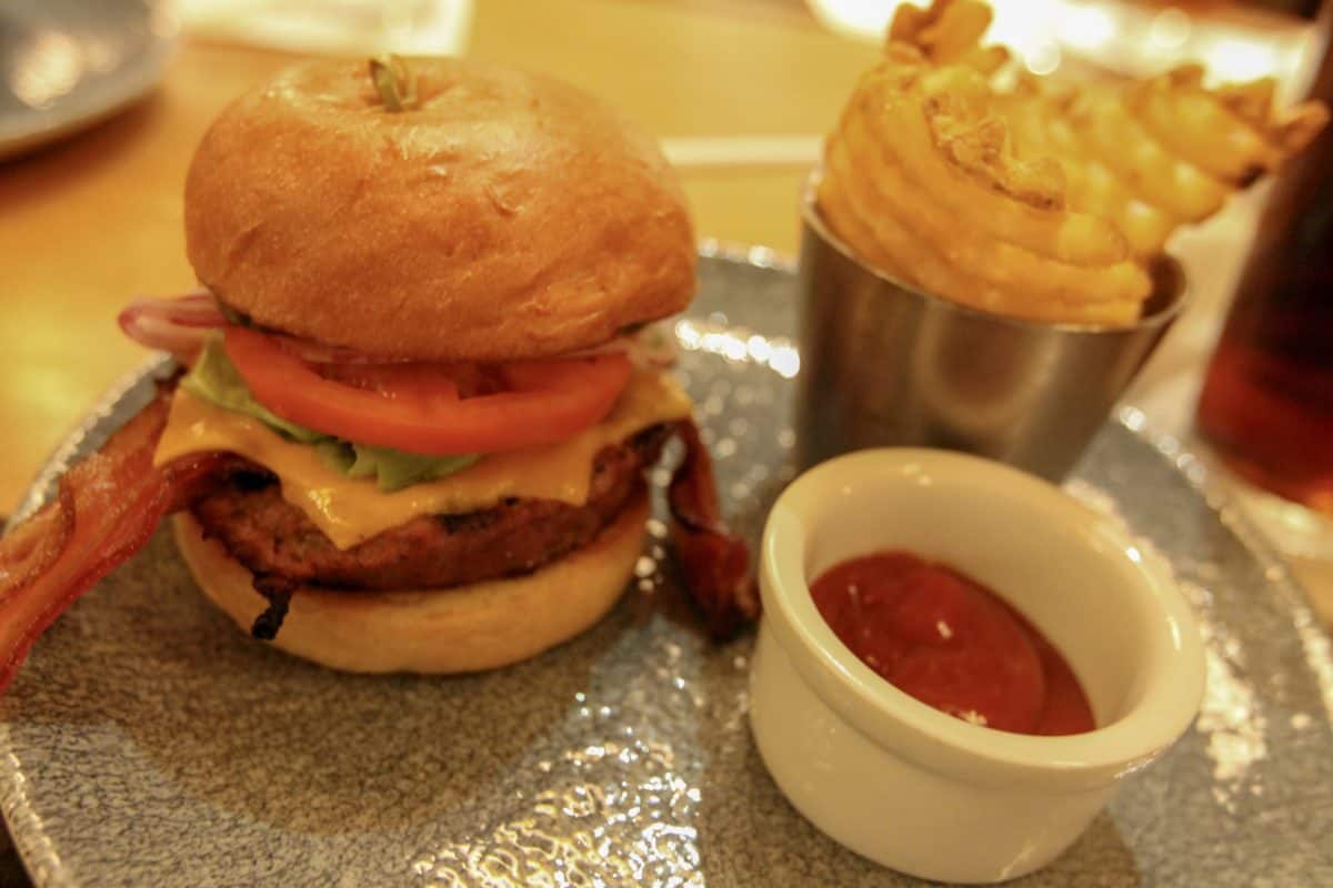 Signature Burger – Signature Blend of Beef, Applewood-smoked Bacon, Cheddar, Red Onion, House-made Pickles, Lettuce, and Tomato on a Brioche Bun – $19.00