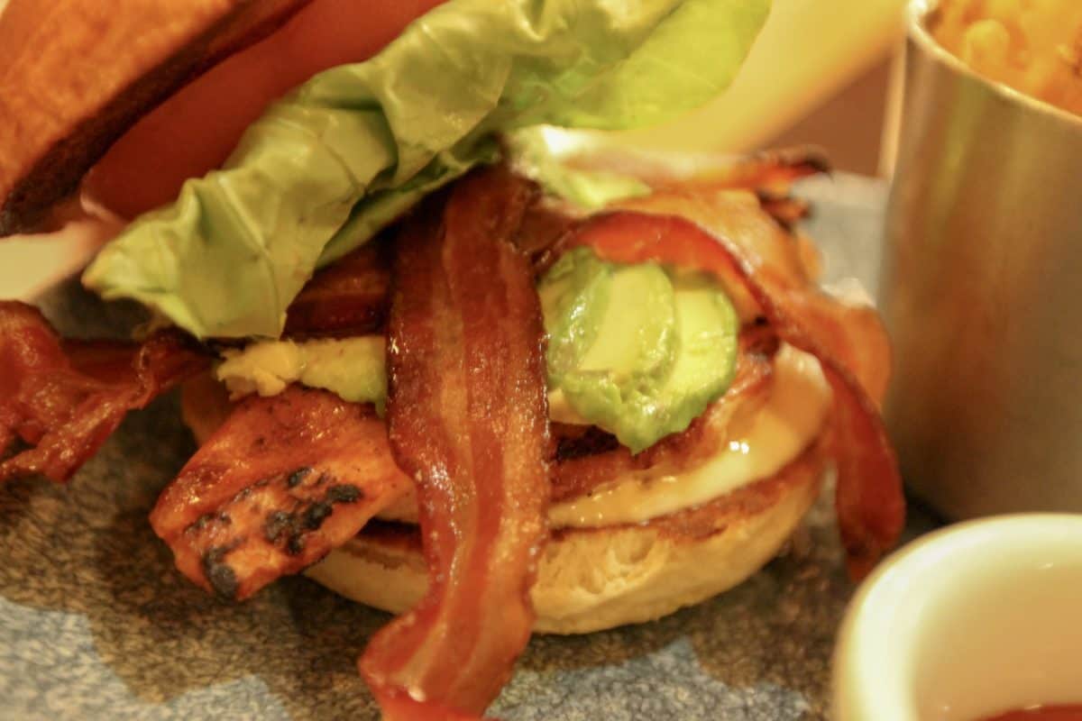 Chicken Sandwich – Herb-marinated Chicken, Avocado, Applewood-smoked Bacon, Lemon Aïoli, Lettuce, and Tomato on a Brioche Bun – $14.00