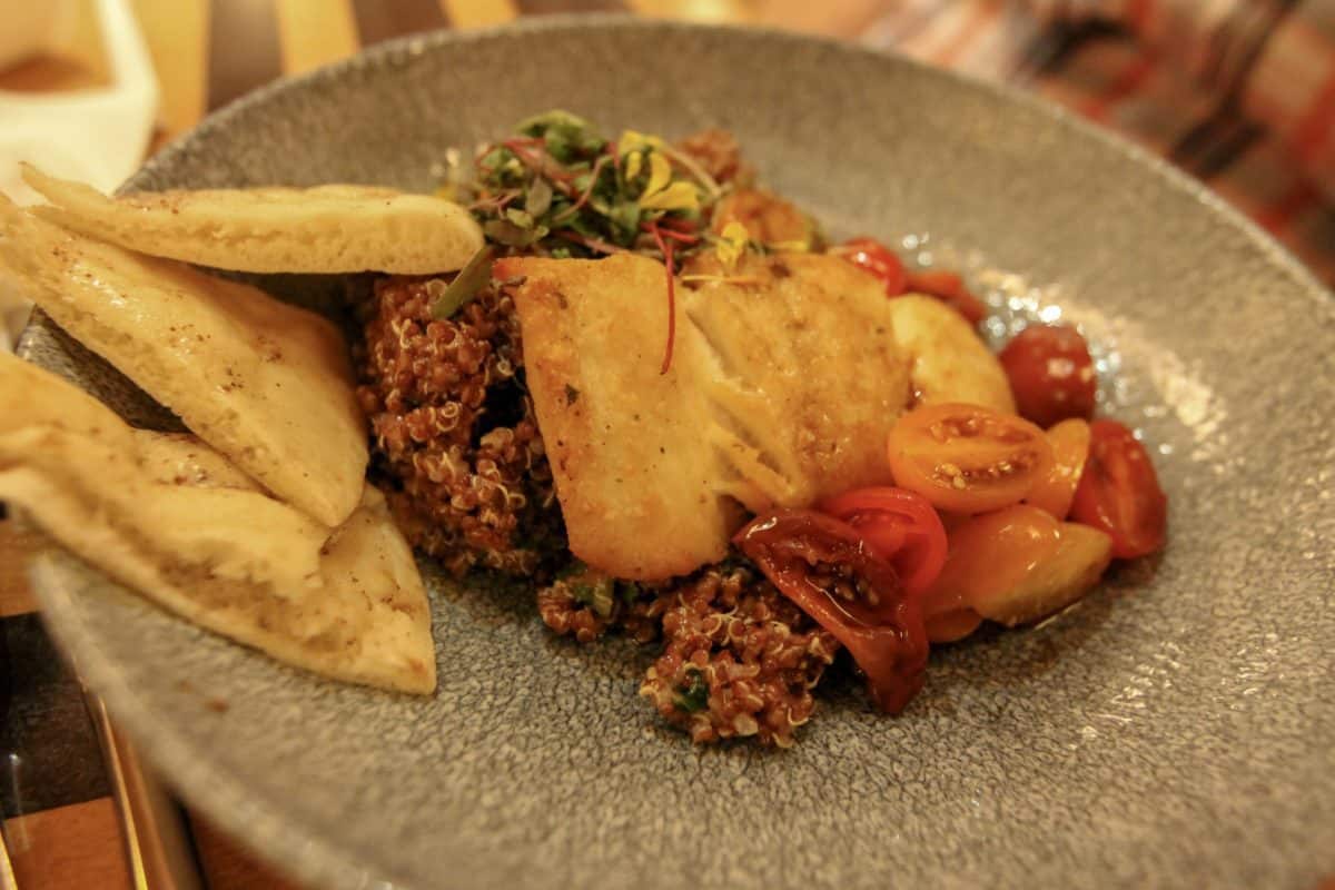 Sustainable Fish of the Day (Market Price) – Quinoa Tabbouleh, Lime Vinaigrette, Pomegranate Molasses, Toy Box Tomatoes – $26.00