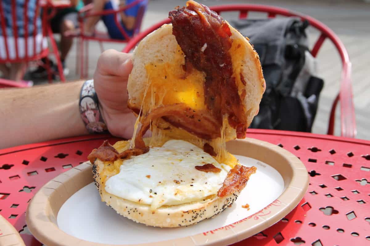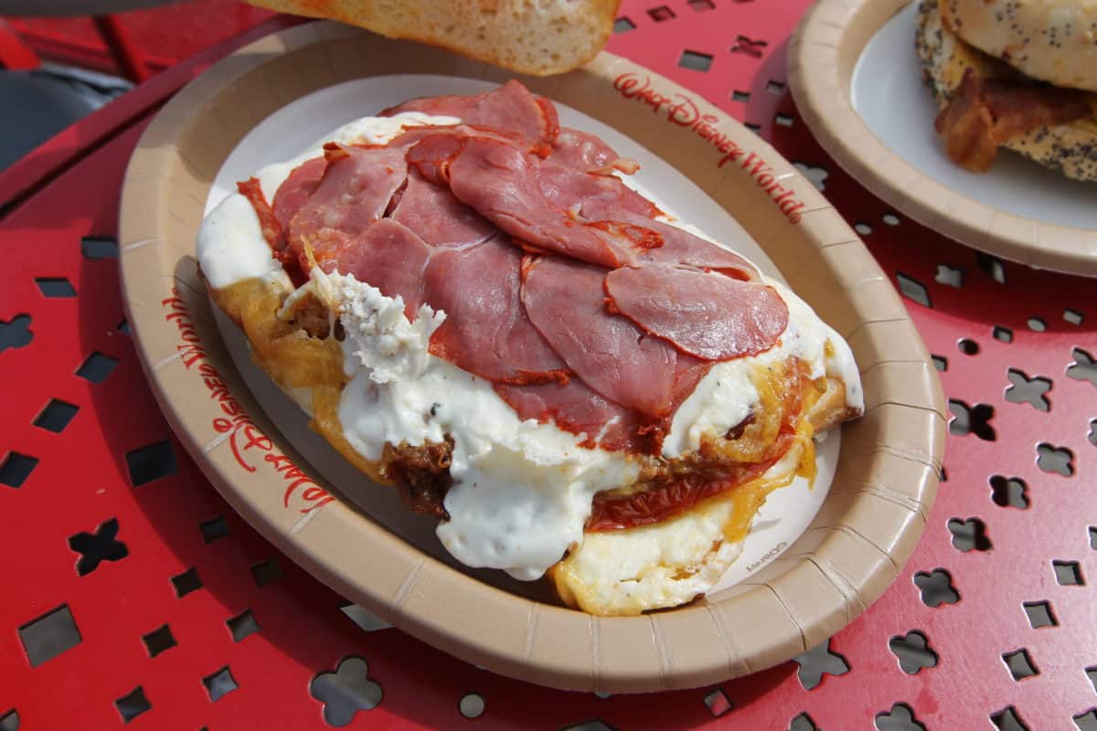 This one included bacon. We were asked 3 times when ordering if we wanted bacon as an upcharge, we said no. Still we received bacon. If you’re a bagel snob stay away, but otherwise, this is a relatively enjoyable sandwich that’s pretty large. The only downside is how fresh the bagel can be, and knowing Disney that’s a gamble.
