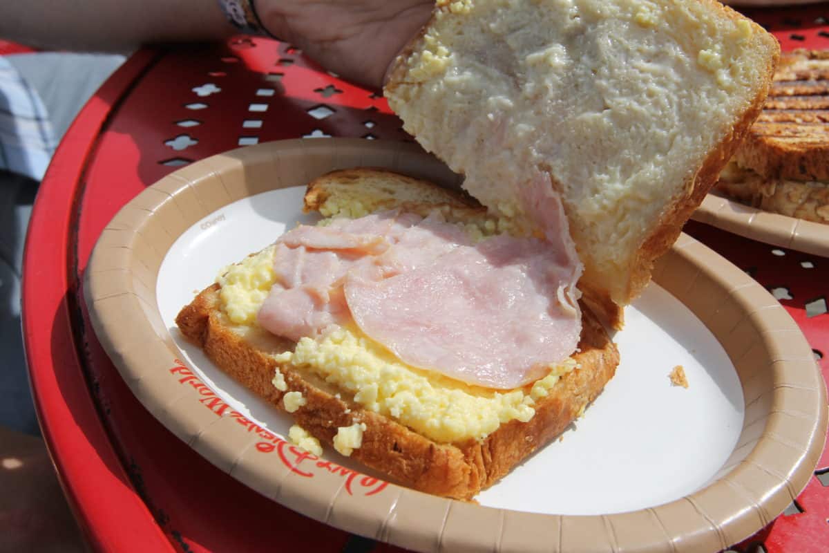 BUTTER BUTTER! This sandwich is gooey and full of ham and cheese and a wonderful butter spread. It gets better towards the middle, where all of the ingredients culminate to a breakfast bonanza. It’s the best sandwich here!