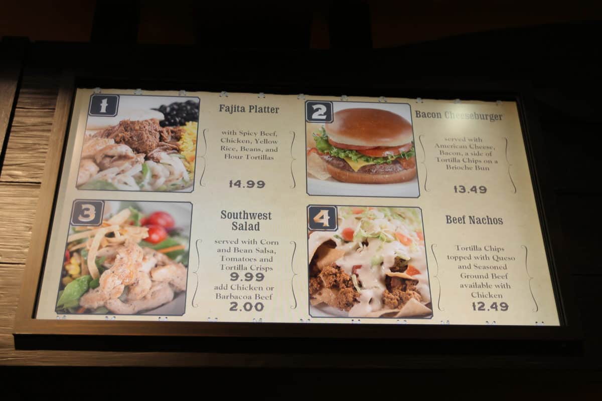 Pecos Bill Tall Tale Inn and Cafe is a quick-service restaurant at Magic Kingdom. This location is known for its Tex-Mex and ‘all you care to load up on your tray’ fixins bar. Recently the menu had some interesting changes: the rice bowls are back from hiatus and there is a nachos option now. We made our way out west to check out the nachos.