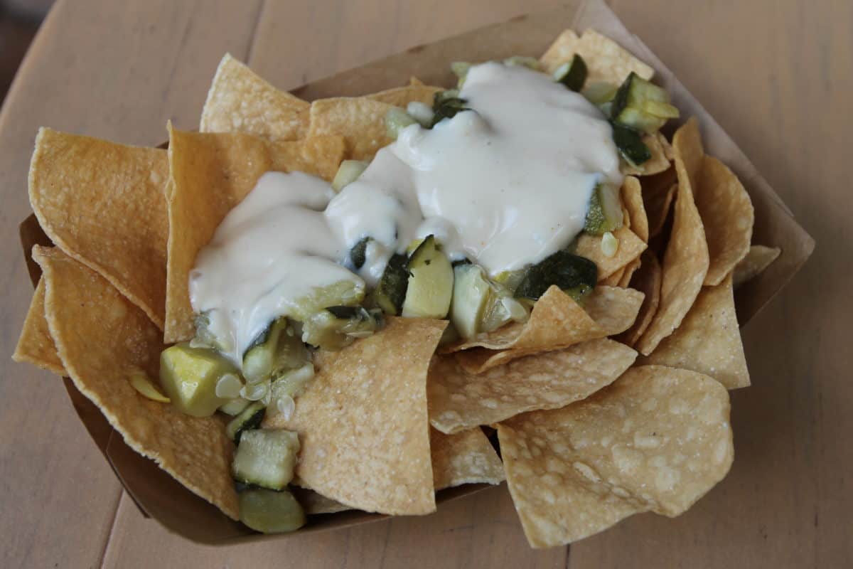 Veggie Nachos – Tortilla Chips topped with Queso, Zucchini, Squash, Lettuce and Tomato – $9.49