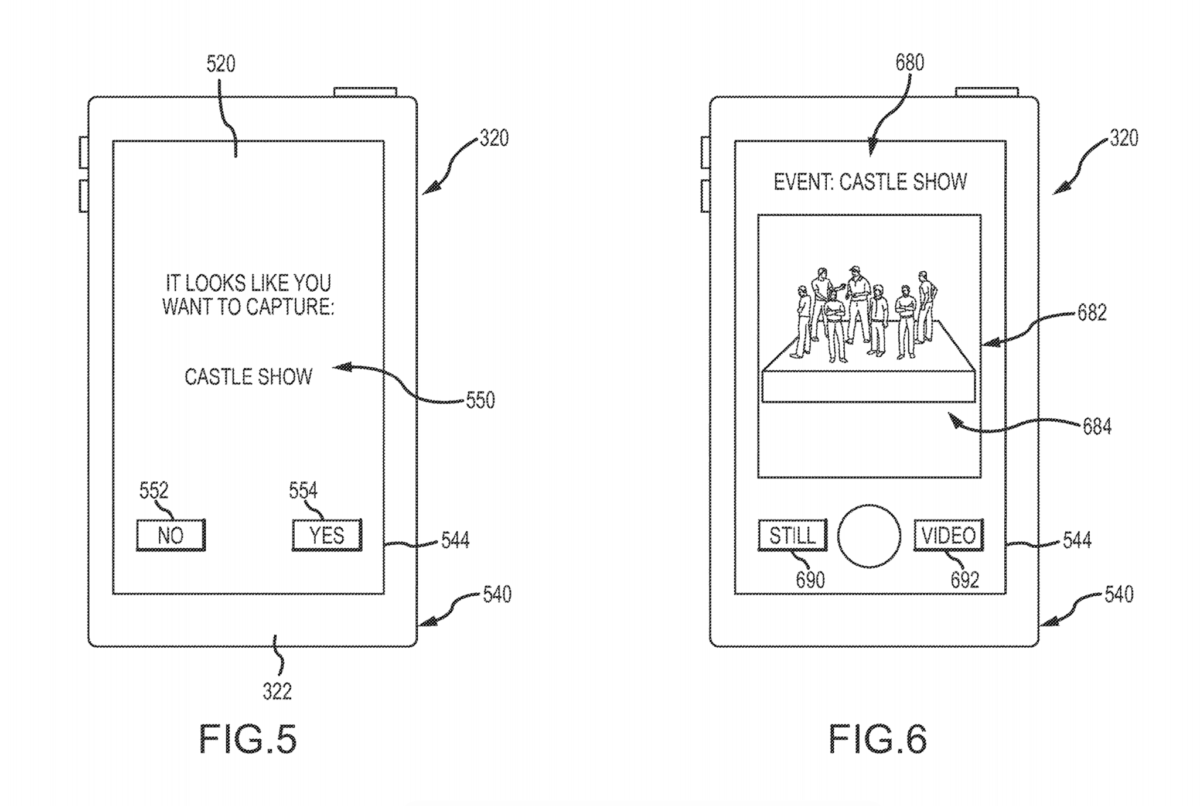 Based on the time of the day and the location, the app will suggest the user take photos or take a video. For example, if the user is pointing the device at Cinderella Castle when there isn’t a show scheduled, the app will suggest a photo. But, if there is a show or fireworks show scheduled at the time the user points the device at the castle, the app will suggest a video is recorded.